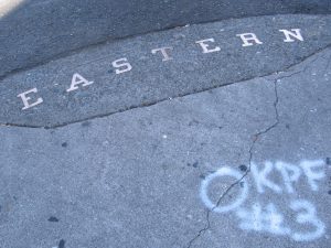 - The street grid used to be a postal carrier’s nightmare: In “1891, there were twelve ‘A’ streets, twelve ‘B’ streets, twelve ‘First’ streets, nine ‘Cedar’ streets and so on,” according to Eugene E. Snyder, in “Portland Names and Neighborhoods: Their Historic Origins.” Why? After incorporating St. Johns, East Portland, and Albina, Portland found itself with a confusing network of duplicate street names. How long did it take for this to be rectified? It’s a long story, but basically, until 1931. Interesting side-effect: rumor has it there are older sections of sidewalk that still have these original street names stamped into them. I haven’t been able to find one yet, but I’m always looking for sidewalks that don’t match their street signs. And now you will too. You’re welcome – and happy hunting.