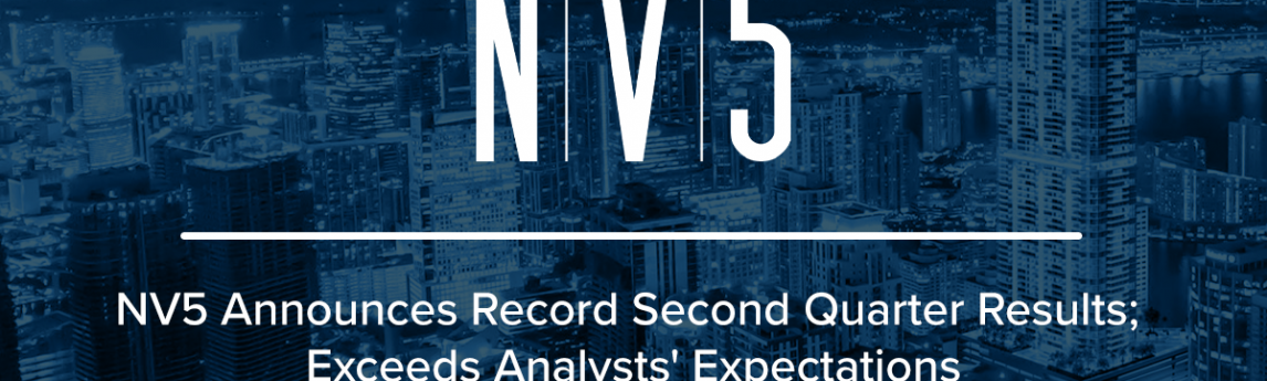 HOLLYWOOD, Aug. 05, 2020 (GLOBE NEWSWIRE) — NV5 Global, Inc. (Nasdaq: NVEE) (“NV5” or the “Company”), a provider of professional and technical engineering, geospatial, and consulting solutions, today reported financial results for the second quarter ended June 27, 2020. In the second quarter, Gross Revenues increased 27% and Gross Revenues,[...]