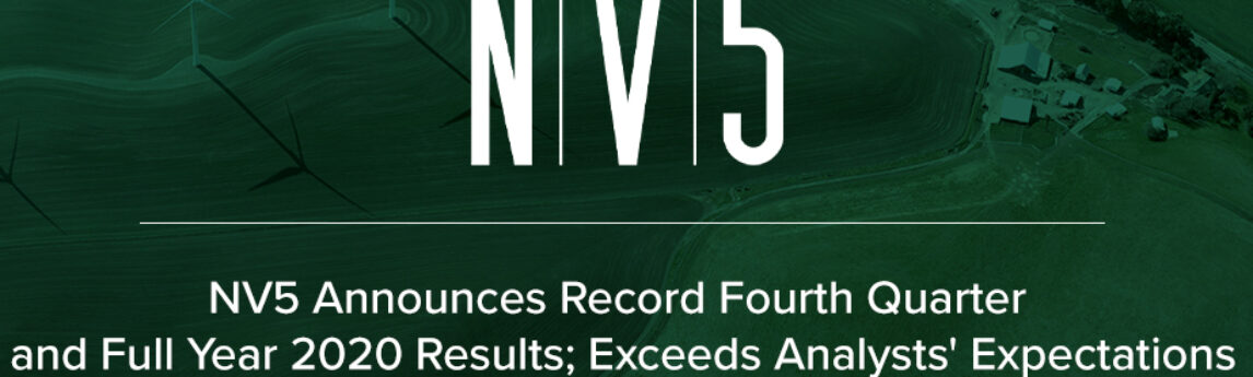 HOLLYWOOD, Fla., March 02, 2021 (GLOBE NEWSWIRE) — NV5 Global, Inc. (Nasdaq: NVEE) (“NV5” or the “Company”), a provider of compliance, technology, and engineering consulting solutions, today reported financial results for the fourth quarter and full year ended January 2, 2021. “NV5 delivered another strong performance in 2020 with significant[...]