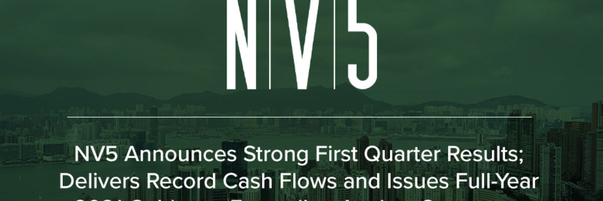 HOLLYWOOD, Fla., May 12, 2021 (GLOBE NEWSWIRE) — NV5 Global, Inc. (Nasdaq: NVEE) (“NV5” or the “Company”), a leading provider of compliance, technology, and engineering consulting solutions, today reported financial results for the first quarter ended April 3, 2021. “We are pleased with our first quarter performance, which generated $48[...]