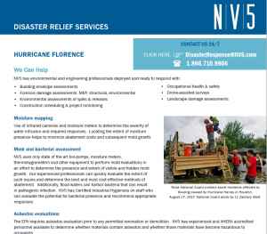 NV5 has environmental and engineering professionals deployed in the Carolinas and ready to respond to a variety of needs: