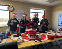The NV5 Elves were hard at work making holiday care packages to help bring joy this holiday season. The Water Resources team in our Oceanside office packed 75 stockings filled with goodies for members of our U.S. military. We coordinated with the non-profit group Soldiers’ Angels to distribute these care packages to members of the military on domestic bases as well as some that are currently deployed abroad. The stockings had games, candies, snacks, socks, beanies, gloves, and much more! As we packed the stockings, it was a great opportunity to reflect upon the dedication of our service men and women and the hard-earned freedom that we enjoy each day. NV5 would like to say a heartfelt thank-you this holiday season to all members of our military and to the families of these service men and women. Thank you for your sacrifices.