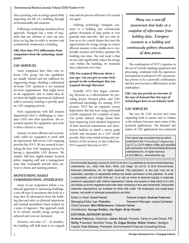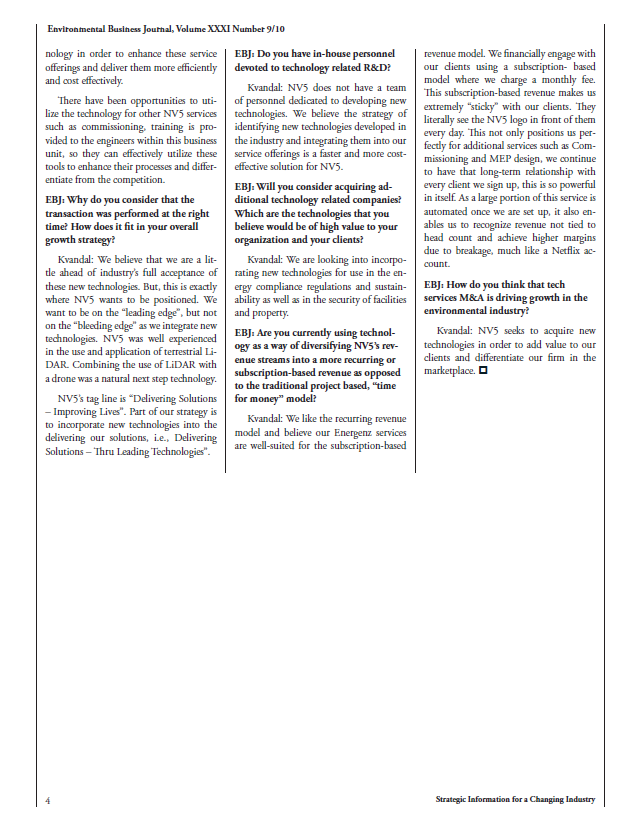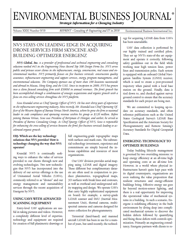 The Environmental Business Journal Interviews NV5 regarding Strategic Information for a Changing Industry.