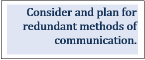 Leaders of institutions should not attempt to engineer ENS solutions in a vacuum. They should engage stakeholders from facilities management, security, campus police, and the fire marshal, along with information technology and media services as a design team. Outside service providers may add specialized knowledge and experience to the team.