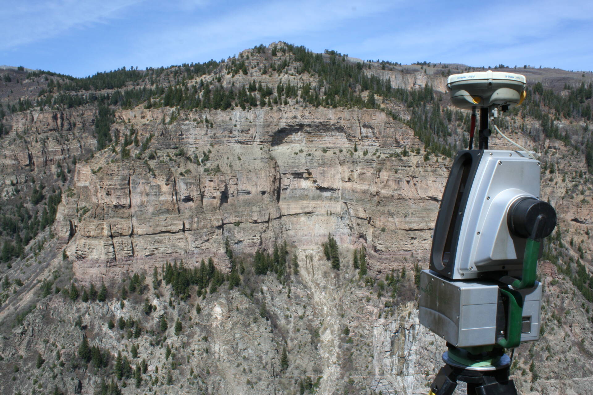 The surveyors were air-lifted to a thin, rocky ledge far above the highway, and secured themselves and the equipment, to lifelines installed by a CDOT rock scaling crew. The precarious location offered surveyors an unparalleled vantage point for mapping; otherwise appreciated only by soaring hawks and mountain lions.
