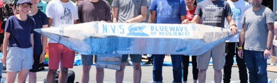 For the third year in a row, NV5’s New York City office participated in the Con Edison Cardboard Kayak Race, which is a part of City of Water Day. This free family festival is organized by the Waterfront Alliance, with a goal of drawing people to the region’s coastline – more information can be found here. Approximately 15 teams were allotted two hours to scramble to build their canoes with the limited supplies allowed, including cardboard and packing tape. Following the build, the Kayak Race took place right in New York City at Brooklyn Bridge Beach along the East River, with three heats, followed by the final race. NV5’s Blue Wave of Resilience took 2nd Place!! Watch the team build their kayak and paddle for placement below (race starts at 3:30)! Photo (L to R): Francesca Tan, Dana Gan, Pradeep Rayaprolu, Jacob Monzella, John Herring, Najam Subhani, Maria Torres, Joseph Menzer, Abdool Ali, and Muhammad Khan.