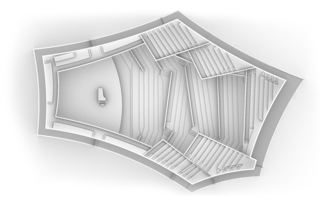 To be clear, this is not license to engage in wild asymmetry, as aural and spatial balance are essential in acoustic design. But, as parametric modeling tools allow designers to explore curvilinear, asymmetrical, and somewhat aformal expressions of space, there is cause both for excitement and a healthy dose of caution. Gentle overtures into asymmetry, in order to create new relationships of people to performance, or people to people, to solve performative challenges, or even simply to explore ideas of space and form, are welcome. Be mindful, however, as asymmetry is no guarantee of good design nor good performance… so work closely with your acoustician.