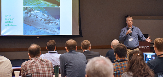 Christopher Parrish, Associate Professor of Geomatics, Oregon State University, discussing benthic habitat characterization with sea-, lake-, or river-bed relative reflectance measurements.