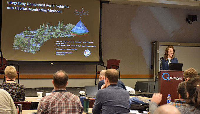 Quantum Spatial successfully hosted its first River Analytics Symposium at our Corvallis, Oregon office on October 29th. The Symposium explored a range of salient topics ranging from river restoration, quantified conservation, habitat analysis, and the application of advanced remote sensing technologies such as topobathymetric lidar and thermal infrared imagery. The Symposium had over 80 attendees that represented a diverse background of expertise from Federal and State Agencies to Tribes, NGO’s, Universities, and engineering firms. The Symposium concluded with an engaging look at how high resolution spatial data are being used to support planning for the Klamath River dam removal project.