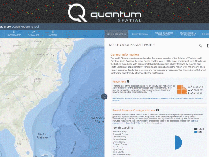 For GIS professionals, overlaying multiple geospatial data layers on a map for analysis and decision making is all part of a day’s work, but for most people geospatial analysis begins and ends with typing a destination into a mapping app and following the directions. Conveying complex geospatial information in a meaningful way to non-GIS professionals is a challenge that Quantum Spatial is solving for the Bureau of Ocean Energy Management (BOEM) and the National Oceanic and Atmospheric Administration (NOAA) through development of the Ocean Reporting Tool (ORT).