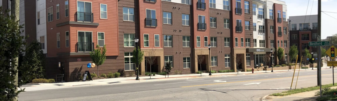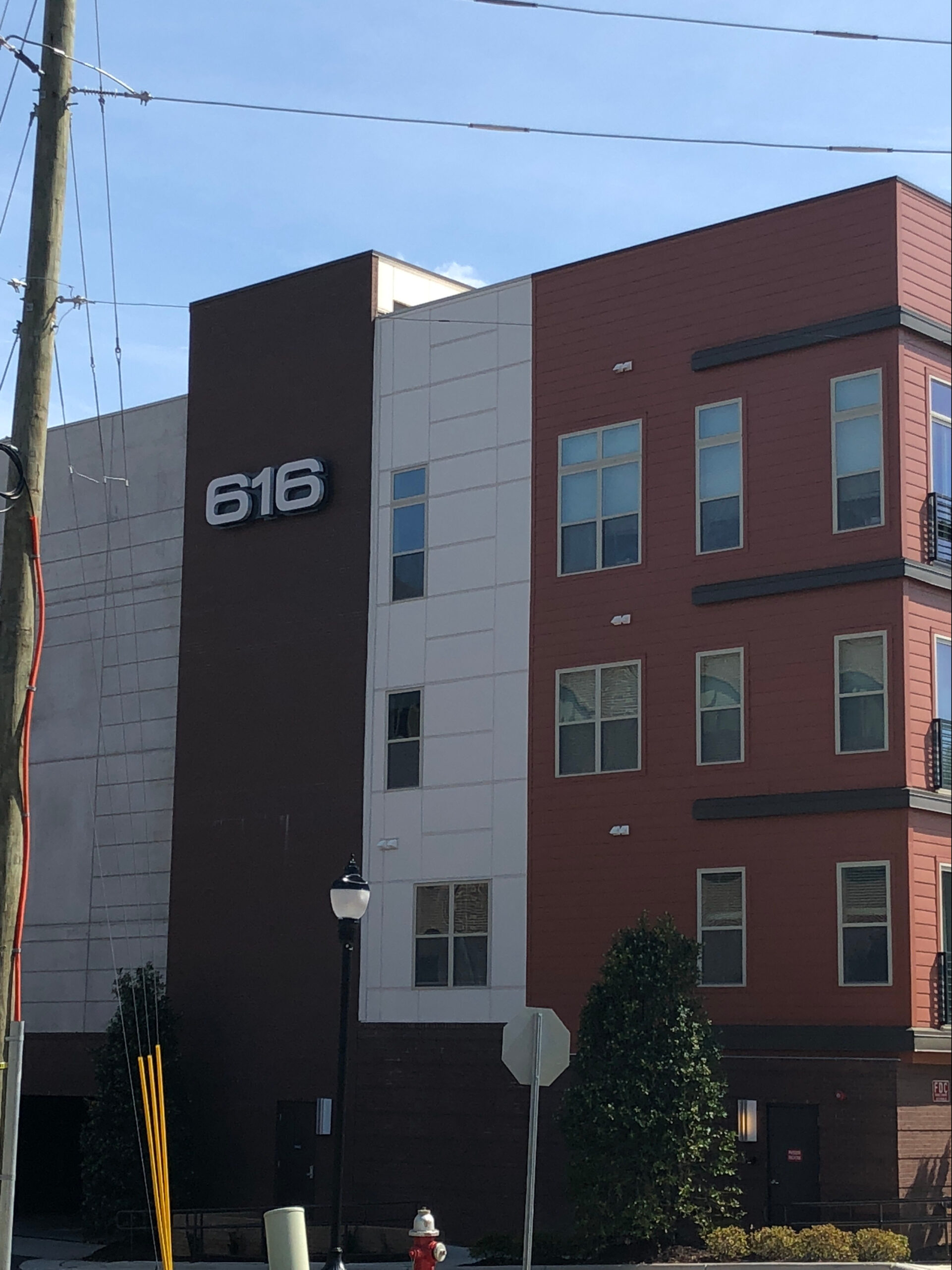 The recently completed 616 Oberlin Apartments project in the Cameron Village area of Raleigh is a great example of how collaboration is a hallmark of the NV5 philosophy. Planning for this project began in 2013 when Wood Partners started the evaluation of a property with an office building that was at the end of its useful life. Environmental evaluations of the property included a Phase I environmental site assessment, along with an evaluation of the presence of asbestos-containing materials in the building, and evaluating possible concerns with a former underground fuel storage tank that had been previously removed from the property. After determining that the environmental conditions were generally favorable, we embarked on a subsurface investigation to see if the conditions could support the expected heavy loads for a precast parking deck structure that would be connected to a multi-story, split-level wood framed apartment building. After extensive field and laboratory testing was completed, we recommended the use of rammed aggregate piers for the project, and coordinated with GeoStructures to develop an appropriate rammed aggregate pier system that would limit total settlement for the heavy column loads (1,400,000 pounds) and wall loads (55,000 pounds per linear foot), as well as limit differential settlement between the parking structure and the wood-framed apartment building. Coordination with a soil-nail contractor was also needed to evaluate a temporary earth retaining system that would allow excavation along the northern property line for installation of the lower level of the parking structure. When access concerns required that an adjoining property be purchased, we jumped back in with additional environmental assessments to make short work of our assessments on the tight time schedule needed to keep the project moving forward. Extensive construction materials testing and Special Inspections were performed during construction, including soils and foundation testing, monitoring installation of the rammed aggregate pier systems, monitoring soil-nail wall construction, concrete quality control testing, post-tensioned slab foundation testing and inspections, structural steel testing, and extensive wood-framing evaluations. This project was completed in 2017.