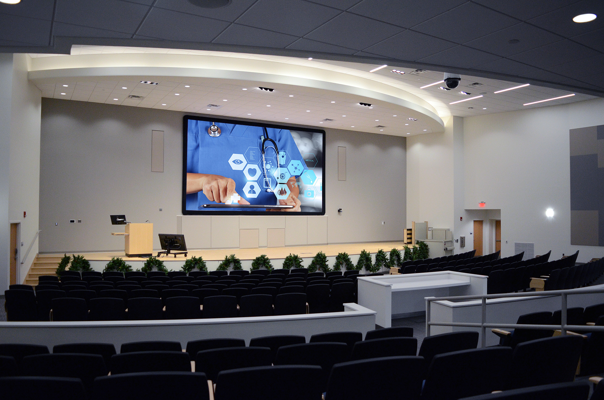 Building Two features the Home Care Apartment, equipped with video and audio capture for students to perform patient care in a simulated environment. In rooms such as the Ultrasound, Respiratory, and the Clinical Skills Labs, students practice what they have learned on high-fidelity manikins. Ultrasound labs use live patients, and the spaces are HIPPA compliant. The Operating Room, X-Ray / Nuclear Medicine Room, and Patient Rooms support actors / simulation manikins, and simulation rooms feature pan-tilt-zoom cameras.