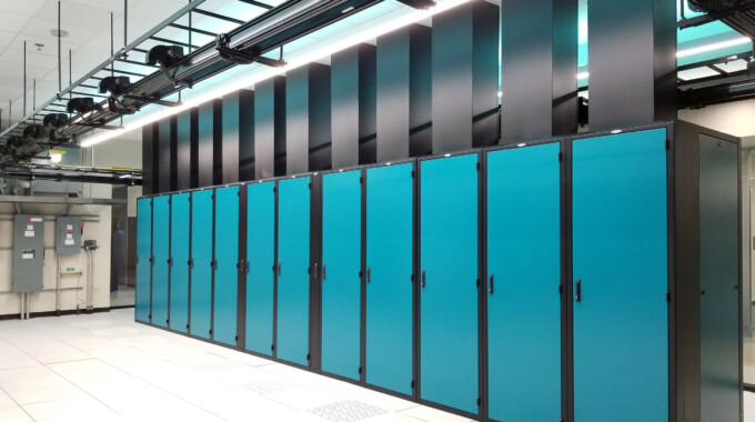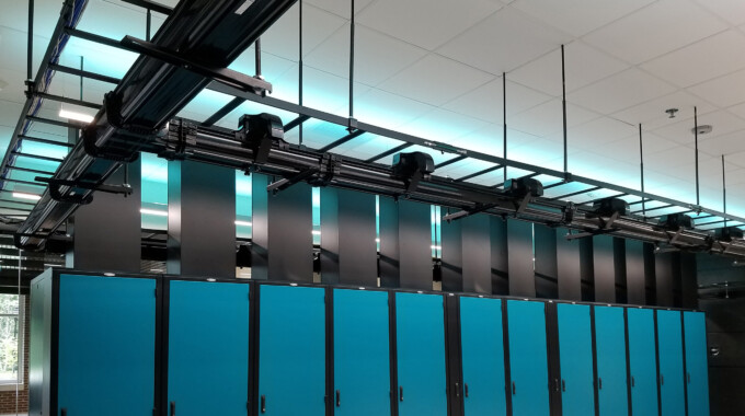 Critical to the operation of the new technology now located within the new building is a central Data Center. This facility houses core network switching systems, server, and other data processing equipment. Not only will it support the Academic Classroom and Office Building, the Data Center is designed to support all of the campus facilities and provide substantial space for future growth. The Network Operations Center monitors the campus network and supports the operation of the Data Center. Visualization of live monitored data is made possible on a tiled video wall comprised of professional, thin, flat panel displays.