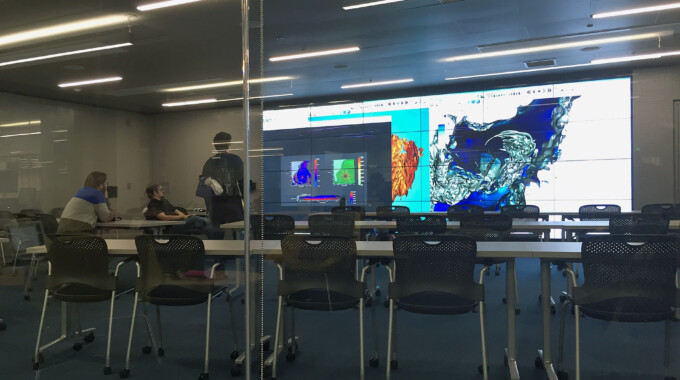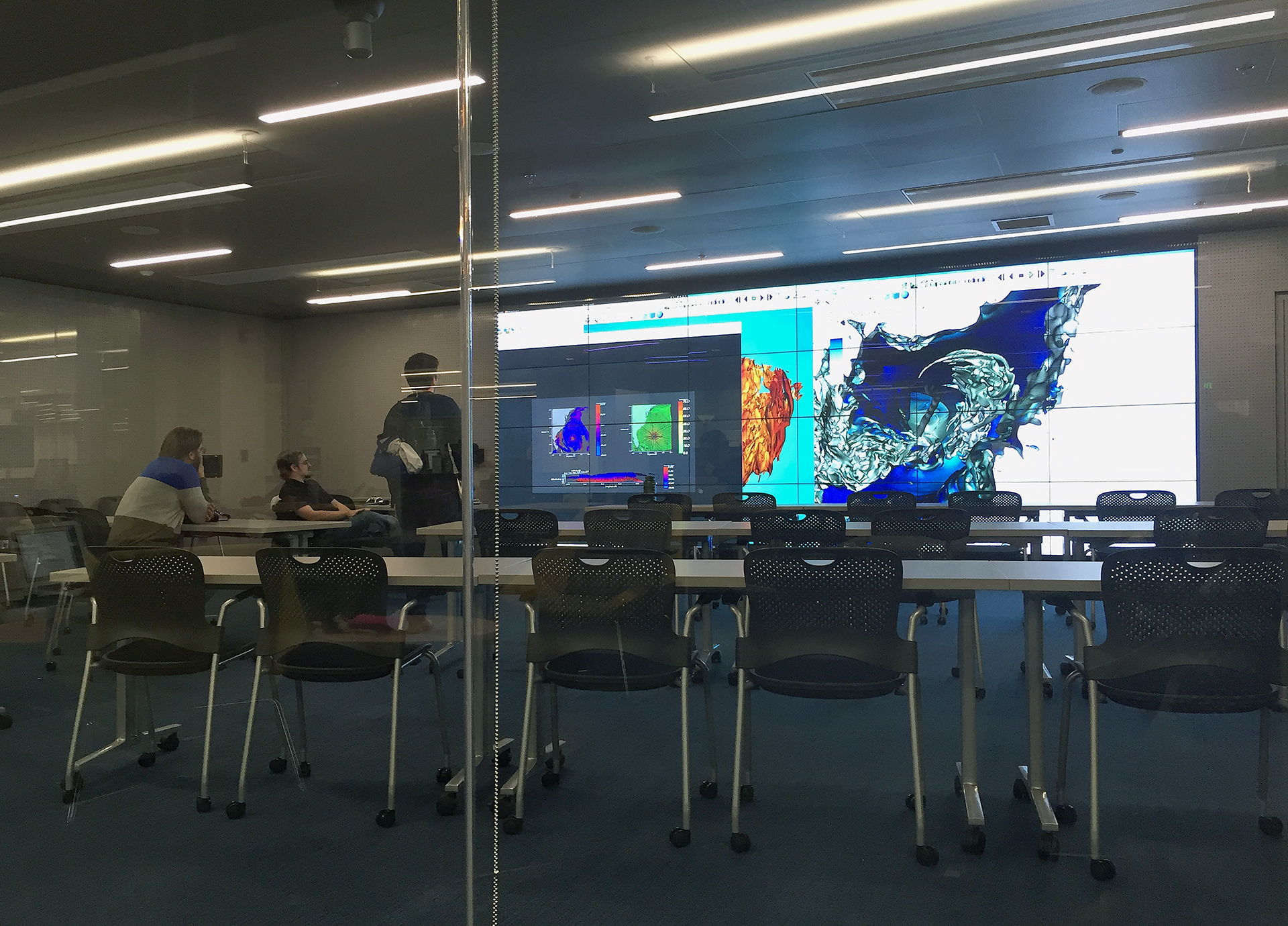 The facility also showcases a “big data” visualization lab, with audio, video, display, conferencing, collaboration, presentation, and control systems. The data visualization lab is the only place in the state of Oregon where groups can view full resolution, 50-million-pixel images. It allows researchers to gain new insights into huge datasets, build 3D simulations and explore vistas ranging from nanoparticles to vast expanses of outer space.
