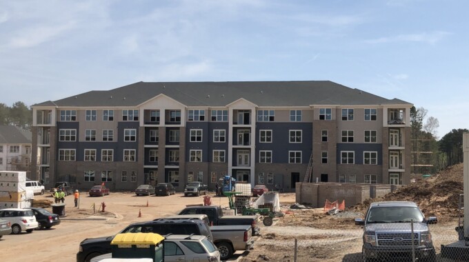 NV5’s work on this 5-building apartment complex began in 2014 with the performance of a geotechnical investigation and a Phase I environmental site assessment. Our soil borings revealed the presence of shallow rock, as well as expansive clay soils near the ground surface. Due to concerns with the anticipated construction costs, an additional subsurface investigation was performed to further delineate the depth to rock, and to quantify the expansive soils that would need to be managed to prevent the shrink/swell characteristics of the clays from affecting construction. Additional borings were also performed to determine conditions in existing roadways that would need to be upgraded and in the widening of an NCDOT maintained the secondary road. Construction began in the summer of 2017, and NV5 provided full-time testing and inspection services associated with site development, retaining wall construction, foundation construction, and pavement construction. Extensive Special Inspections were required, including wood framing construction inspections. Our pavement testing on the off-site roadways and the NCDOT road widening was performed by our NCDOT certified QMS technicians.