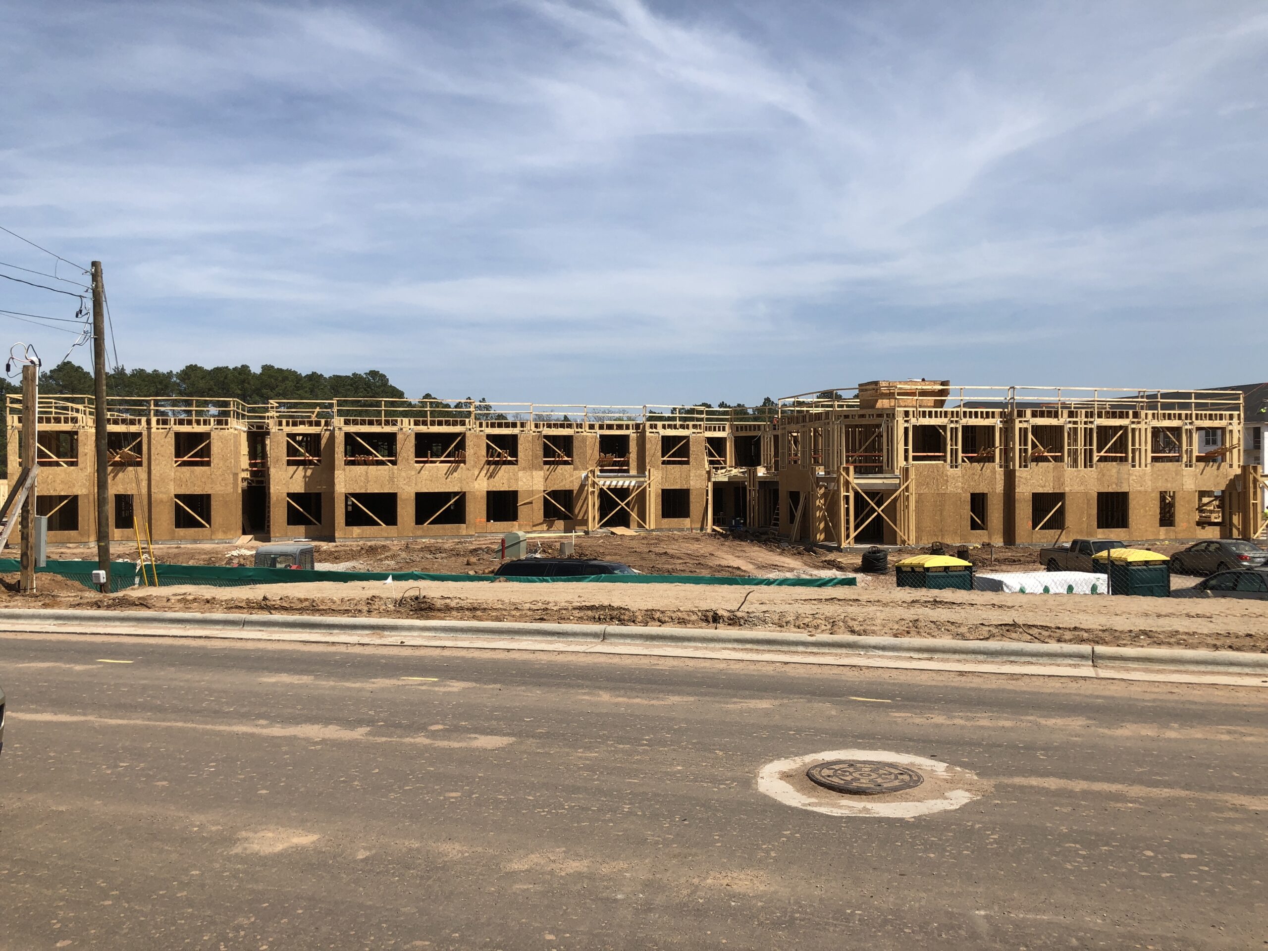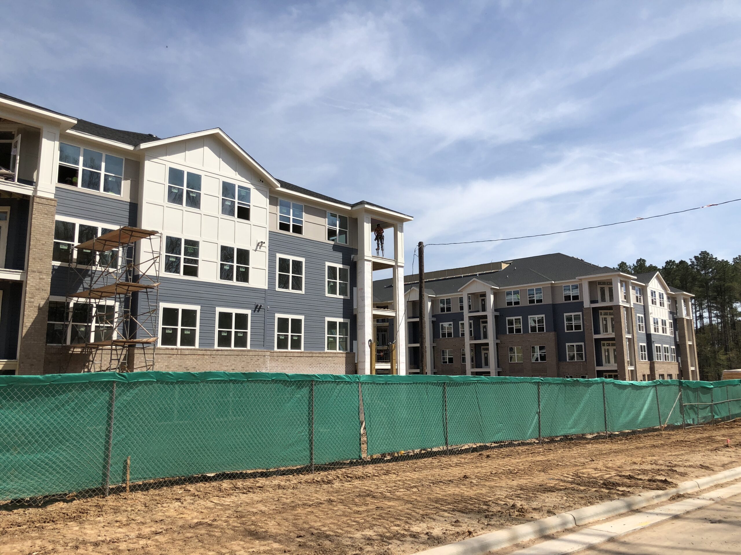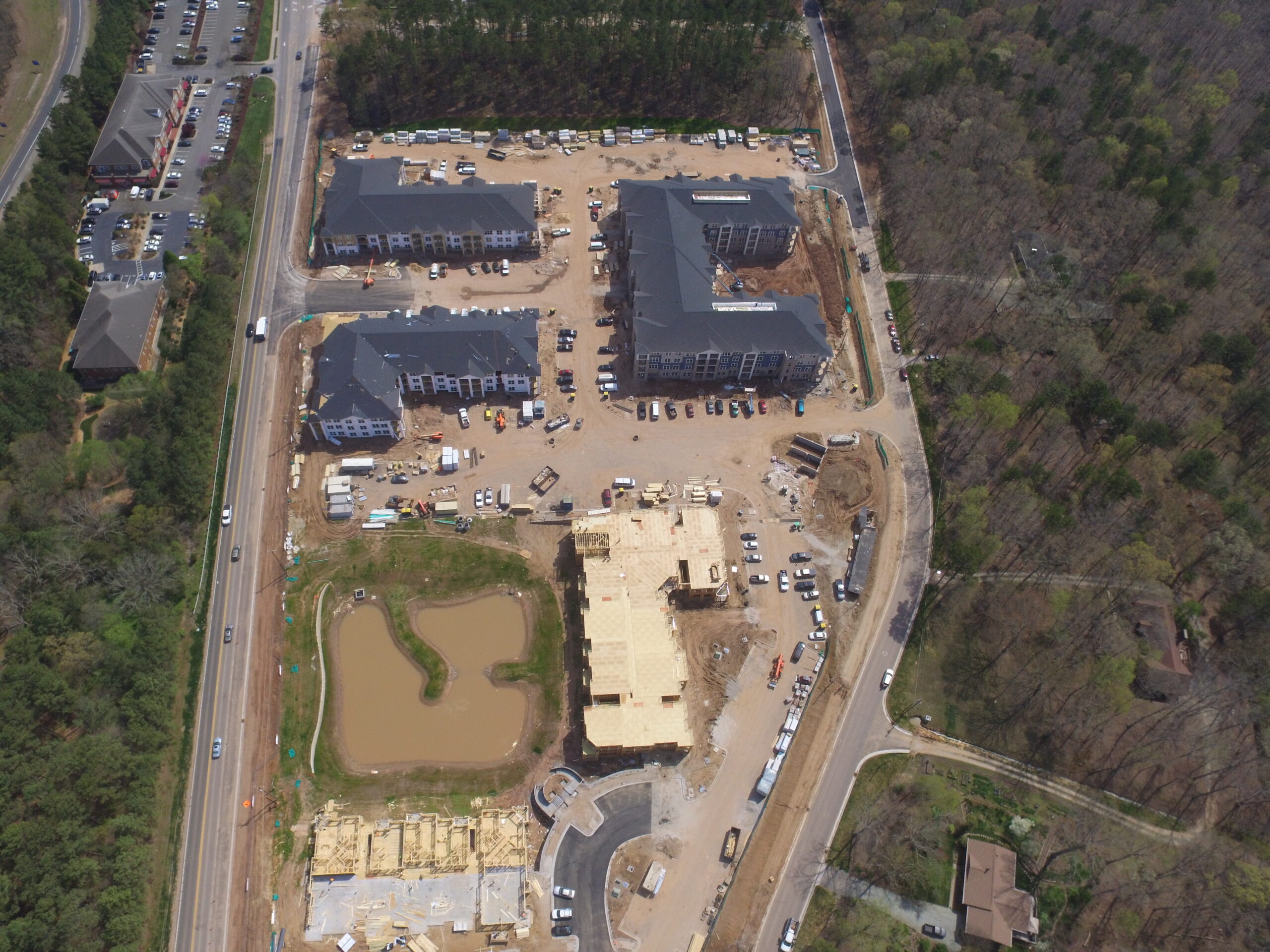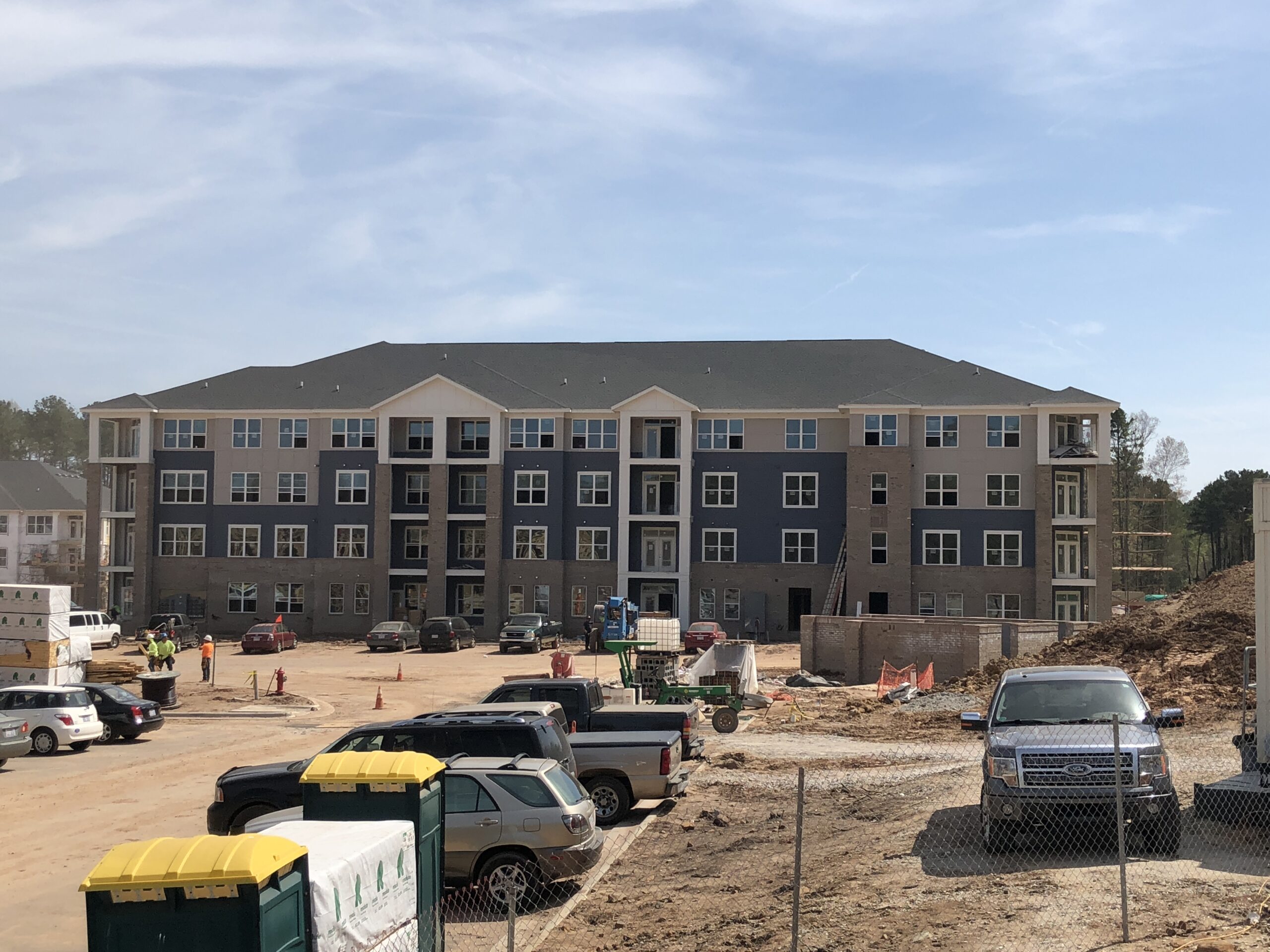 NV5’s work on this 5-building apartment complex began in 2014 with the performance of a geotechnical investigation and a Phase I environmental site assessment. Our soil borings revealed the presence of shallow rock, as well as expansive clay soils near the ground surface. Due to concerns with the anticipated construction costs, an additional subsurface investigation was performed to further delineate the depth to rock, and to quantify the expansive soils that would need to be managed to prevent the shrink/swell characteristics of the clays from affecting construction. Additional borings were also performed to determine conditions in existing roadways that would need to be upgraded and in the widening of an NCDOT maintained the secondary road. Construction began in the summer of 2017, and NV5 provided full-time testing and inspection services associated with site development, retaining wall construction, foundation construction, and pavement construction. Extensive Special Inspections were required, including wood framing construction inspections. Our pavement testing on the off-site roadways and the NCDOT road widening was performed by our NCDOT certified QMS technicians.