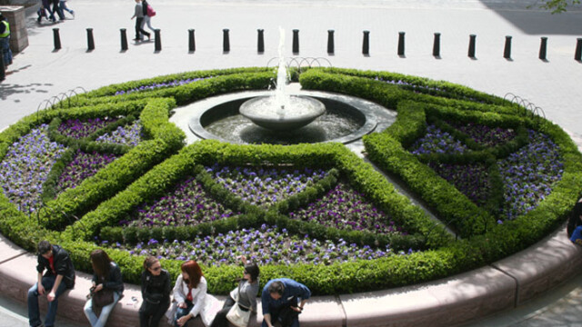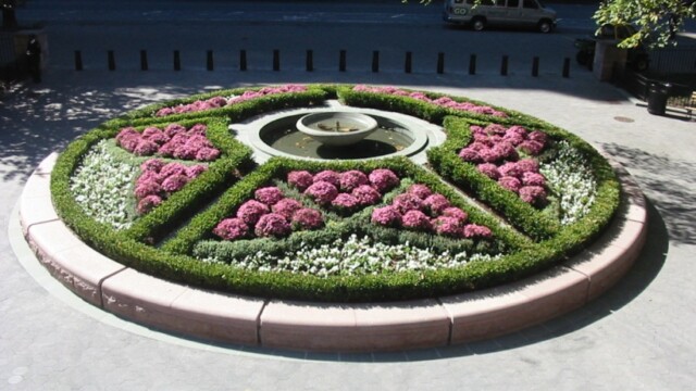 Reconstruction of the surrounding plaza space also included new asphalt block paving and benches, lighting, fencing, and planting beds laid out around the perimeter of the space.