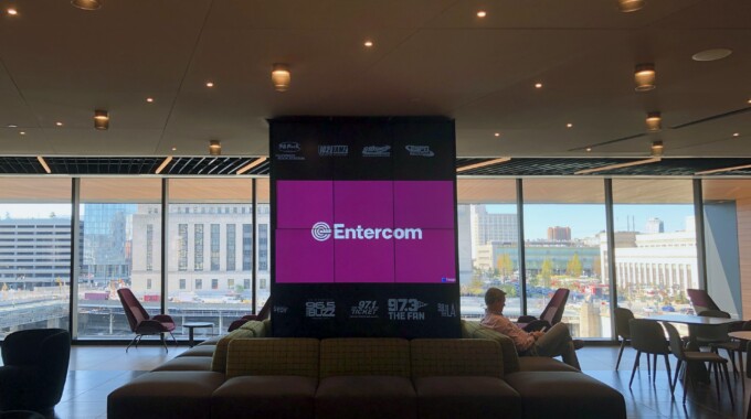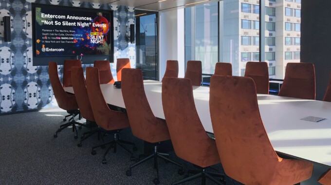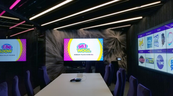 A custom-designed LED display located in the lobby acts as a “showcase” for special events and custom content. Visitors and potential clients alike can witness all that Audacy has to offer at a glance.