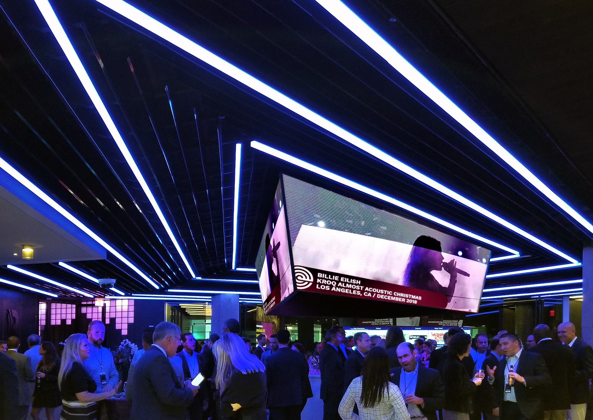 A custom-designed LED display located in the lobby acts as a “showcase” for special events and custom content. Visitors and potential clients alike can witness all that Audacy has to offer at a glance.