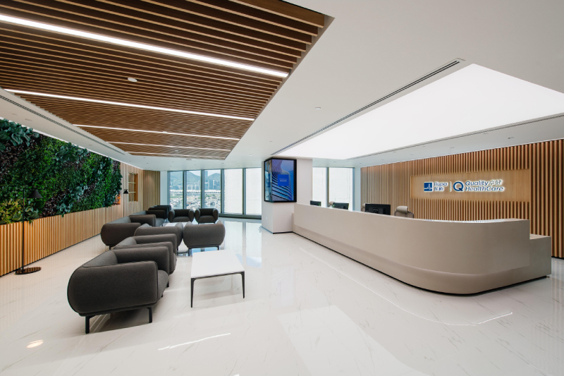 In line with Bupa’s sustainability agenda and supporting One Health Mission –to raise awareness of the between health and the planet’s health, the new office is LEED Gold certified and fitted with eco-friendly and recyclable materials, as well as low-energy light fixtures and air quality sensors. – BUPA Hong Kong