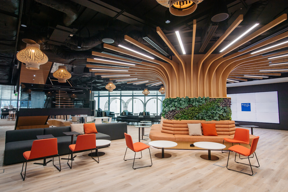 The new office features flexible workspaces for both focused activities and collaboration; advanced technologies for more agile communication; and a number of human-centric features, such as optimized lighting that mimic natural daylight, ergonomic furniture and a dedicated wellness room.