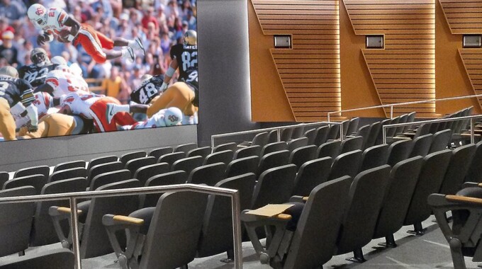 The building features a state-of-the-art Game Day Theater with 4k projection and surround sound systems to immerse guests in the game day experience, exhibition areas, and an indoor football field. The acoustic design included a comprehensive study of noise from a railway that is directly adjacent to the building’s Southwest façade. Various envelope enhancements were explored and implemented to limit the impact of this noise source, while preserving daylight and views along the building’s façade.
