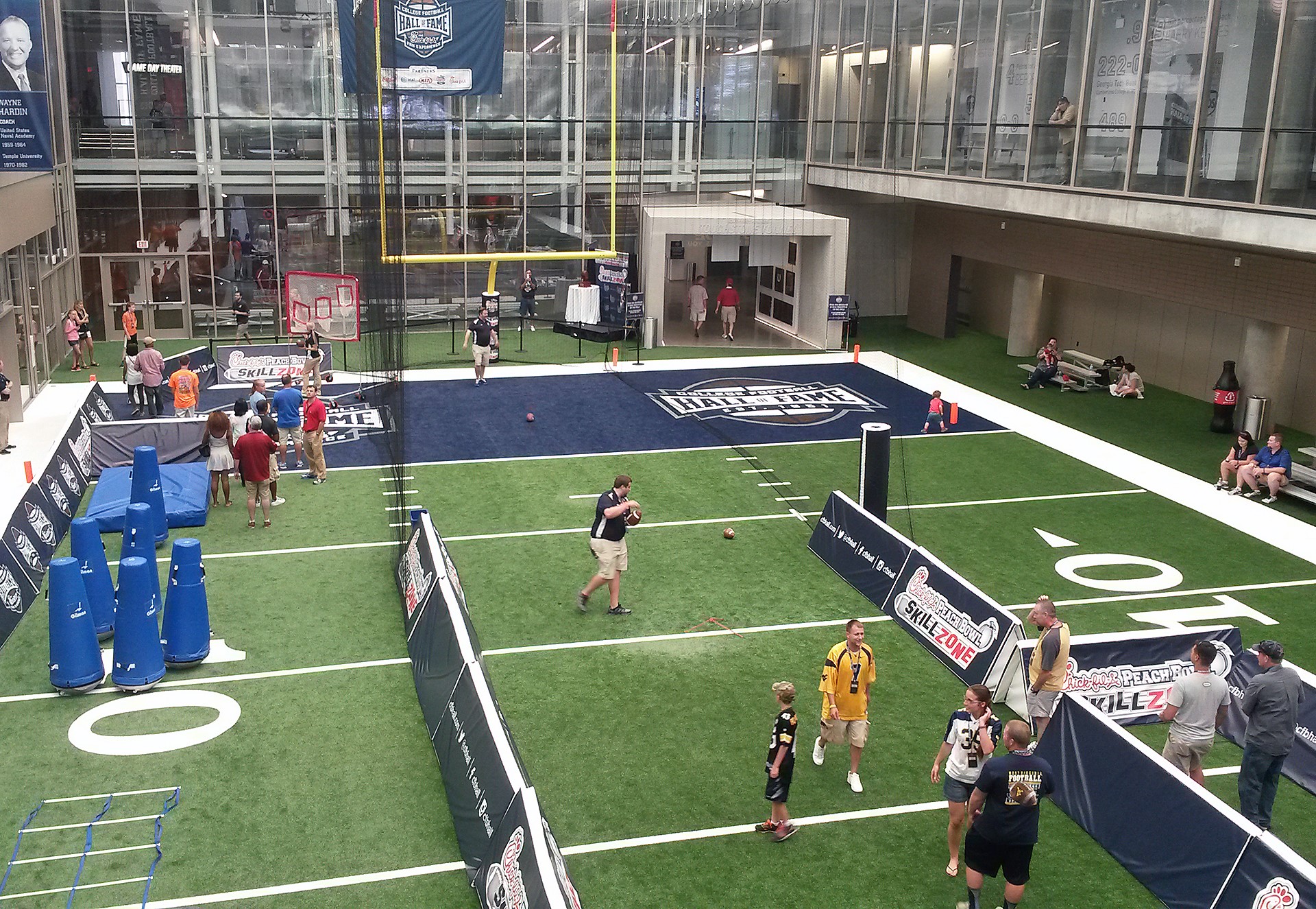 The building features a state-of-the-art Game Day Theater with 4k projection and surround sound systems to immerse guests in the game day experience, exhibition areas, and an indoor football field. The acoustic design included a comprehensive study of noise from a railway that is directly adjacent to the building’s Southwest façade. Various envelope enhancements were explored and implemented to limit the impact of this noise source, while preserving daylight and views along the building’s façade.