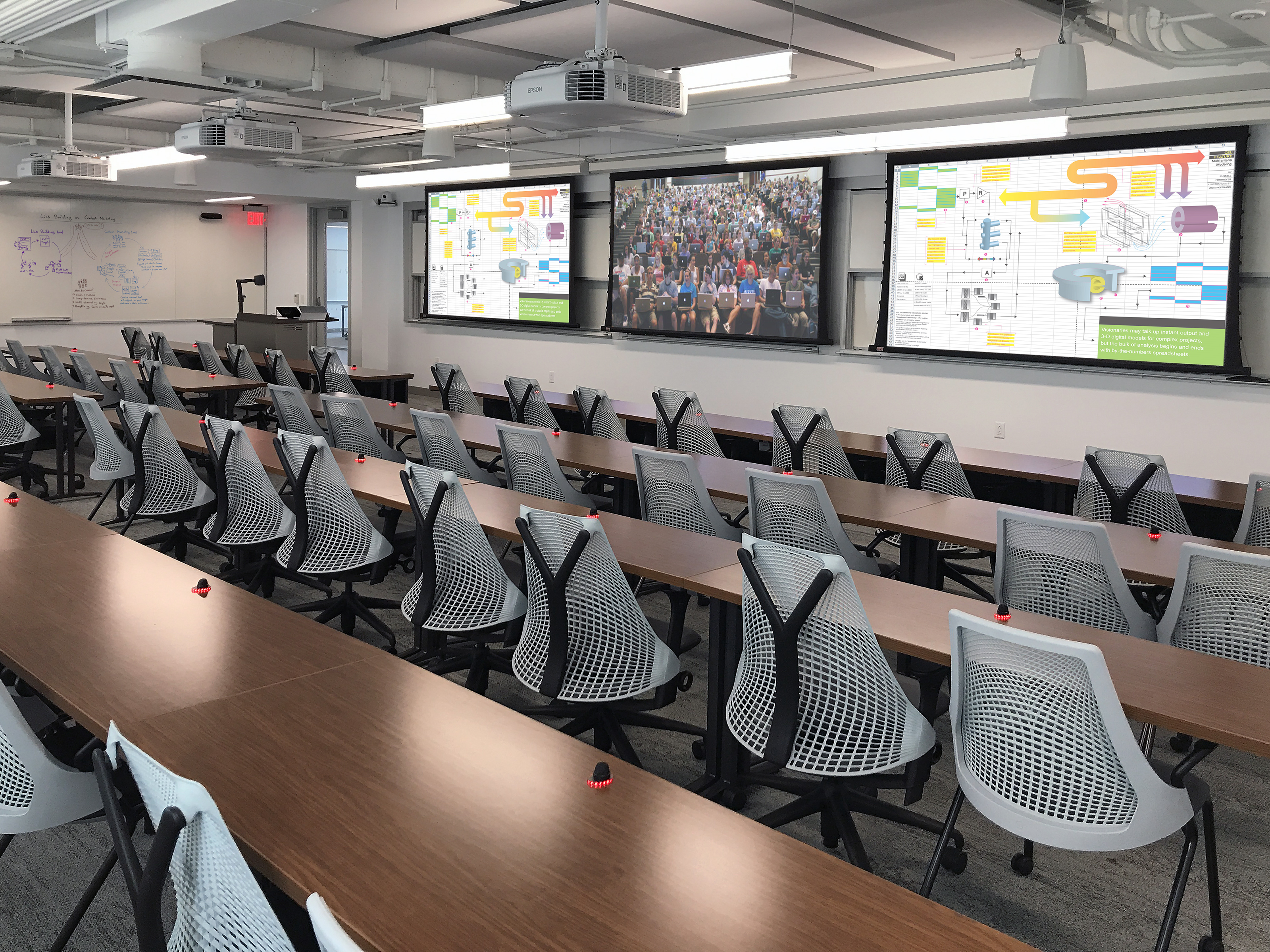 The building is equipped to support both traditional lecture and small group collaborative learning with classrooms of various sizes. The rooms include reconfigurable furniture, an audiovisual system that supports multiple viewing orientations, lecture capture, and multimedia presentation capabilities. Other spaces highlighting the facility are a multipurpose conference room, multiple conference rooms, meeting and group study rooms, and an Experiential Learning Lab providing space for students to develop and utilize new technology.