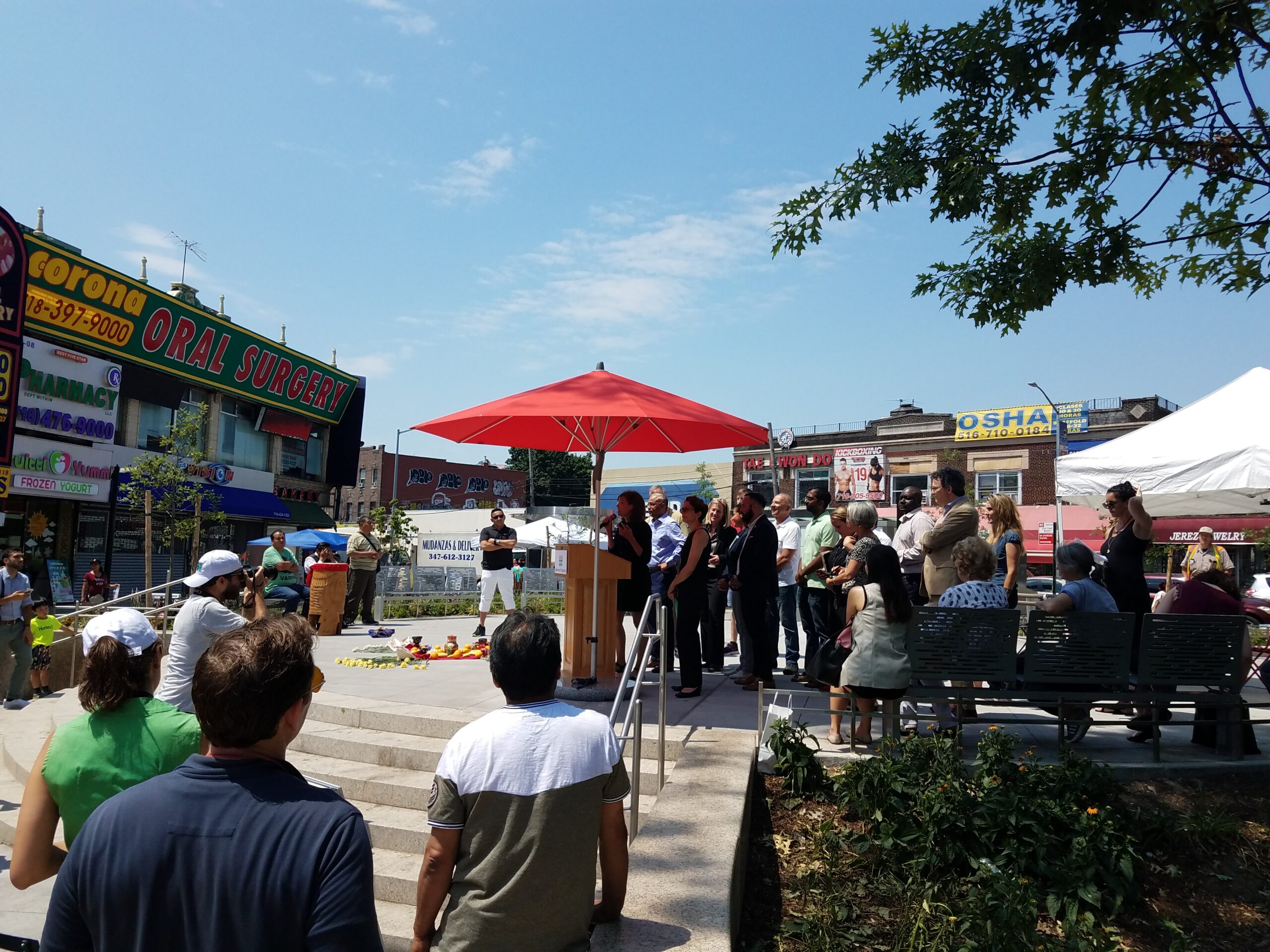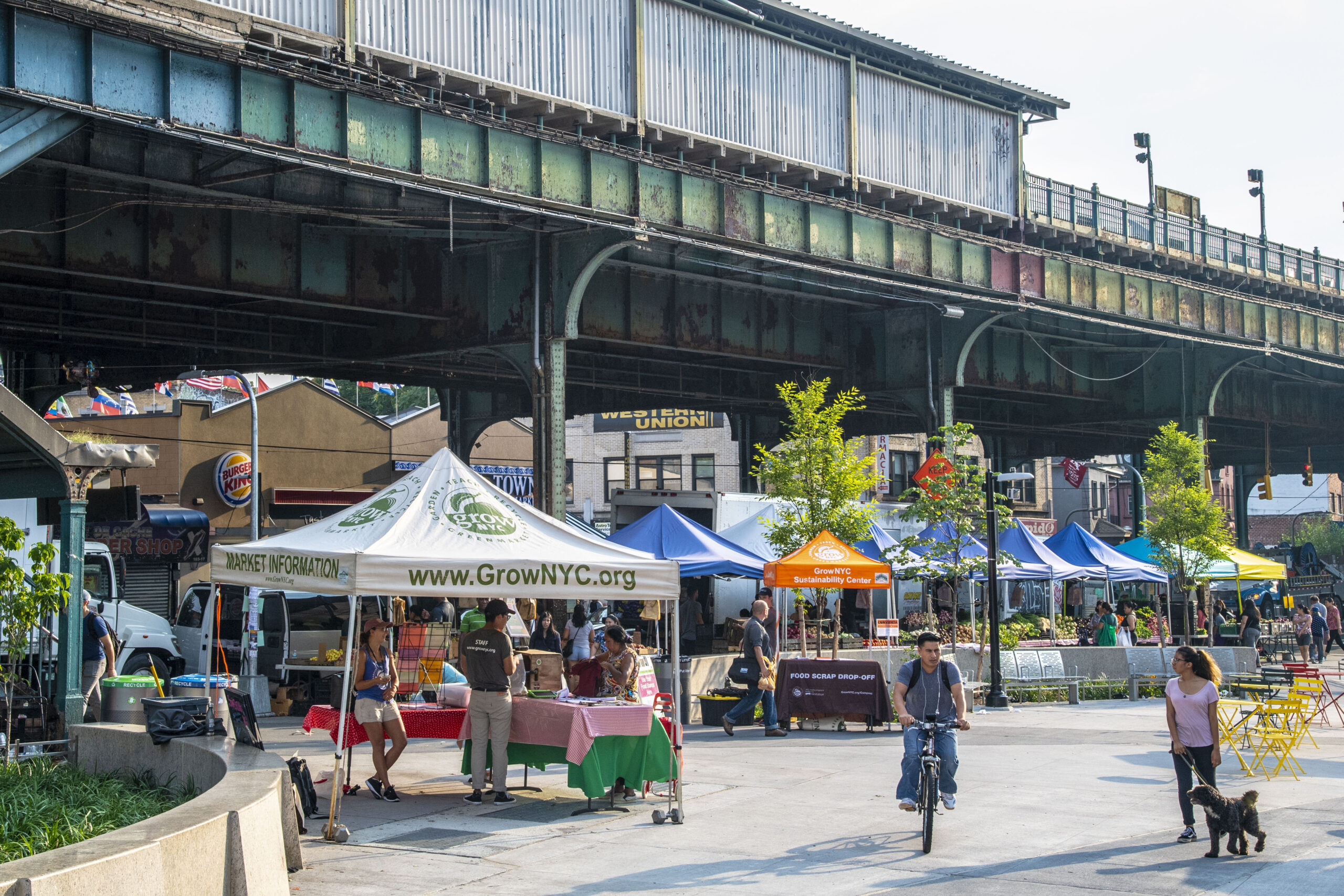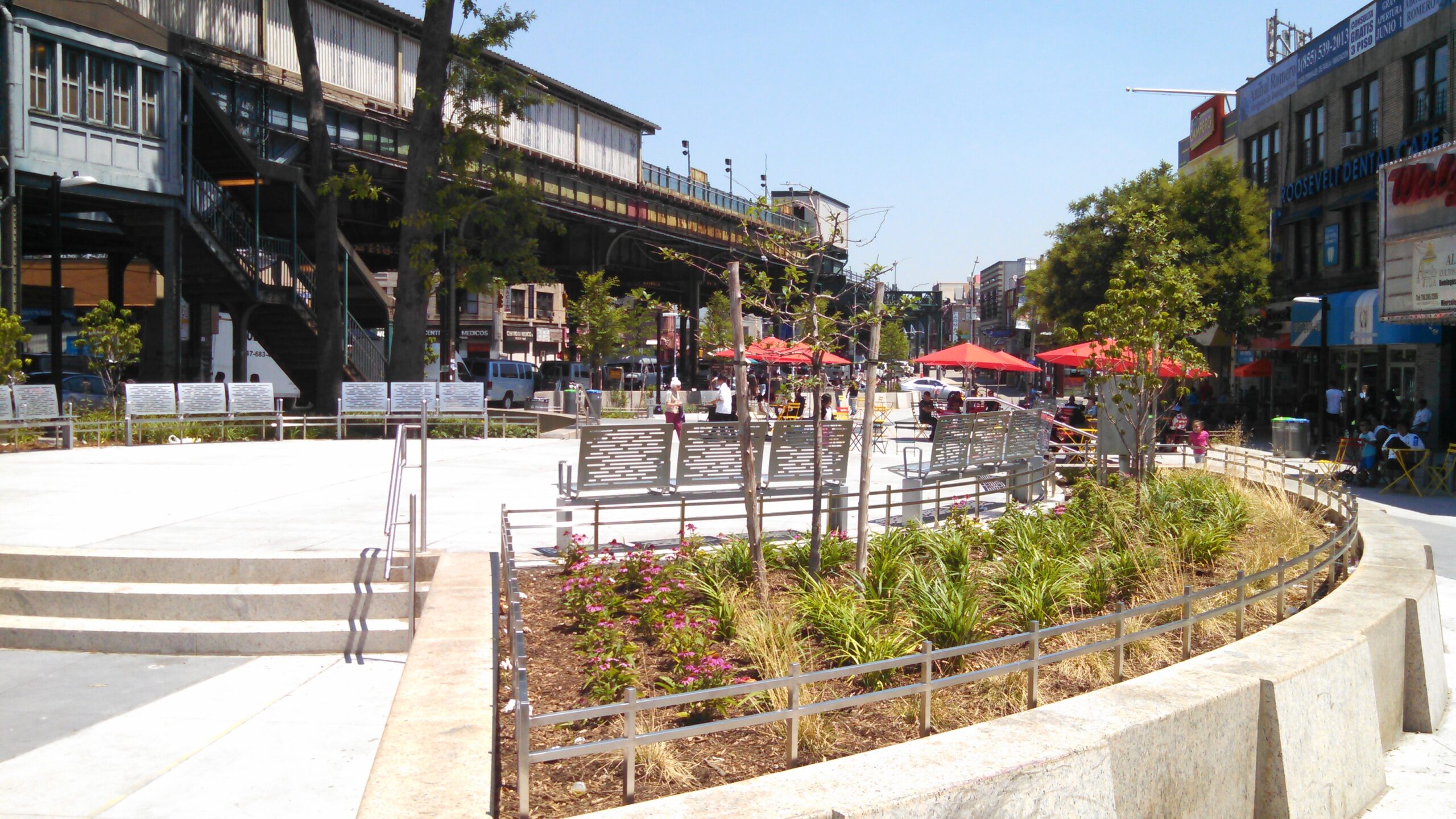 NV5 designed a new urban plaza located directly adjacent to the 104th Street station on the Number 7 subway line (Roosevelt Avenue) in Queens, New York. This project closed a one block long section of street to connect the plaza with the adjacent sidewalk and the stores that front it.