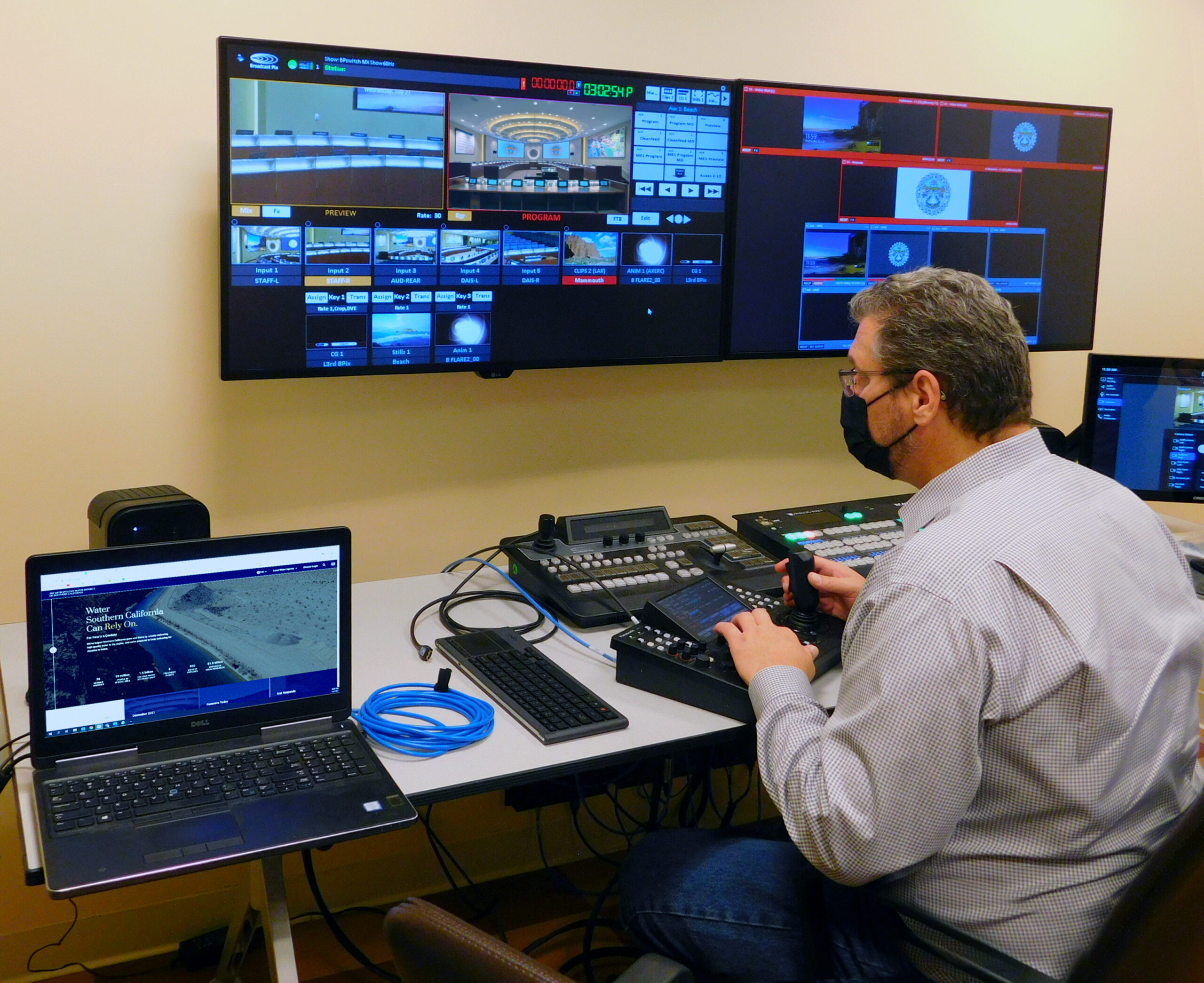 The Boardroom features two large LED video walls flanking the famous MWD medallion logo behind the dais, providing excellent views of meeting materials. Strategically placed remote control cameras provide video capture, and a full-featured control room delivers flexibility with all aspects of audiovisual, sound reinforcement, online recording, and broadcasting for both formal hearing and informal sessions.