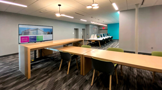 The community has access to the Innovation Center where they can be involved in a variety of activities. The center has a professional grade television and recording studio open to the public. A virtual reality room allows its users to experience things from gaming to virtually training truck drivers or pilots. The Innovation Center also has an electronic arts makerspace with a robotics lab, a video wall, and green screens that are linked to the virtual reality room.