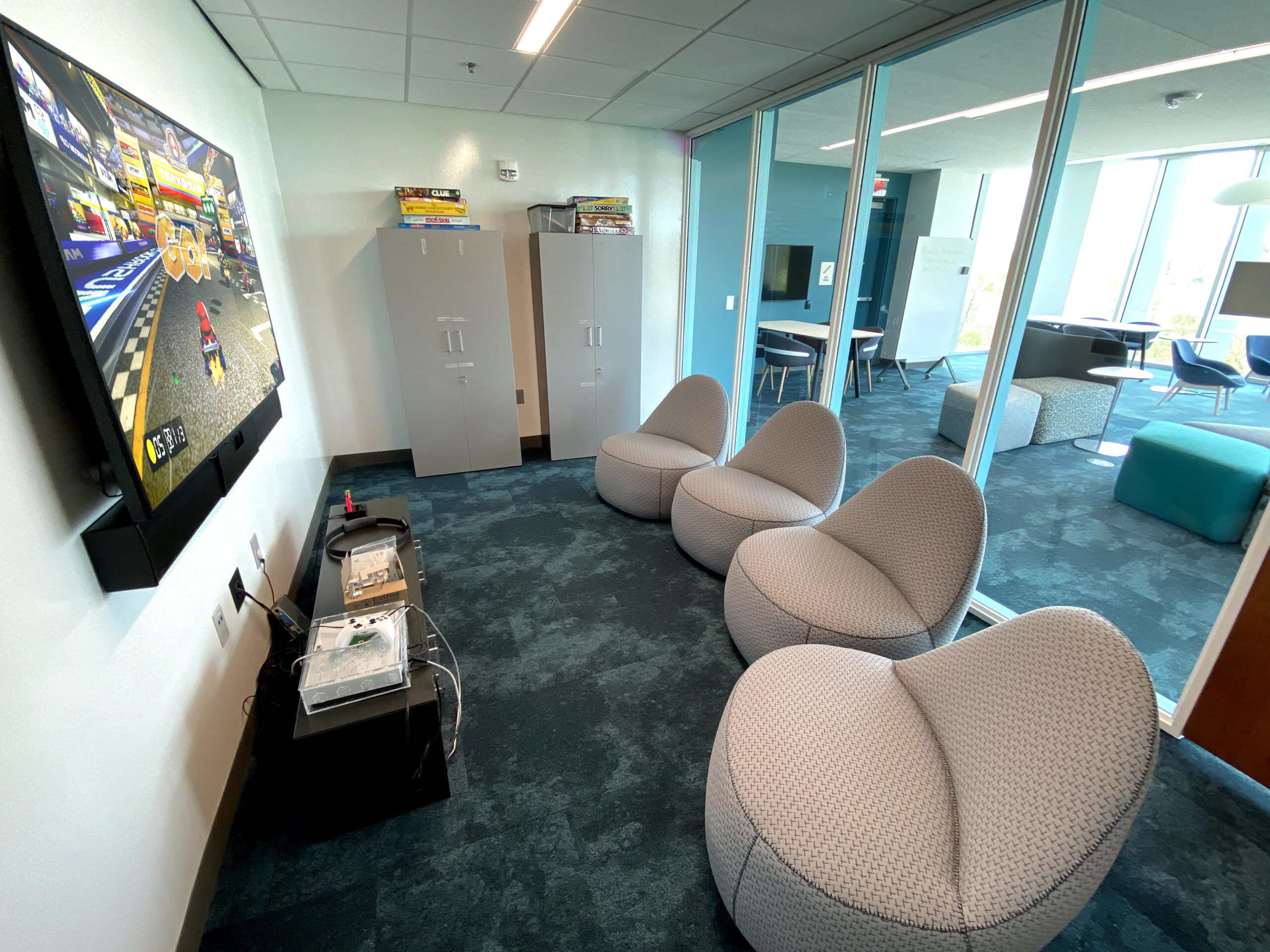 A variety of technology-enhanced spaces are available to patrons, making the library a central hub of the community. The multi-purpose performing arts room is optimized for performers and viewers to be fully immersed in the show. This performing arts room is on par with a small Broadway theater with its theatrical, house, and event lighting that aids in setting the mood of the show. To make sure patrons outside of the theater aren’t disrupted by performances, NV5 acoustically treated the room to ensure it is soundproof. Performances are able to be streamed and uploaded to the library website instantly because of the full technical deck of equipment in the editing suite.