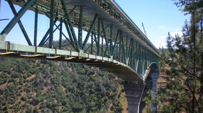 The Foresthill Road Bridge was placed on the Mandatory Seismic Retrofit list by Caltrans in 1999. The bridge is a 2,428 ft long, 75 ft wide steel deck truss structure which spans the North Fork of the American River. It is the tallest bridge in California.