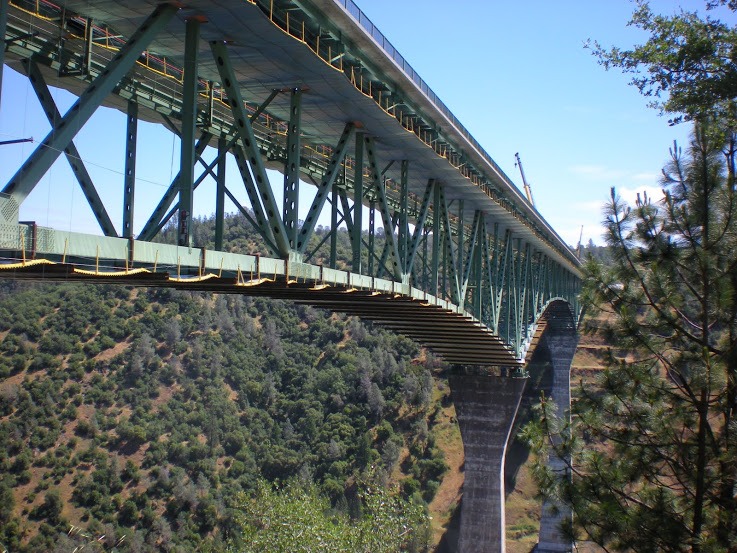 The Foresthill Road Bridge was placed on the Mandatory Seismic Retrofit list by Caltrans in 1999. The bridge is a 2,428 ft long, 75 ft wide steel deck truss structure which spans the North Fork of the American River. It is the tallest bridge in California.