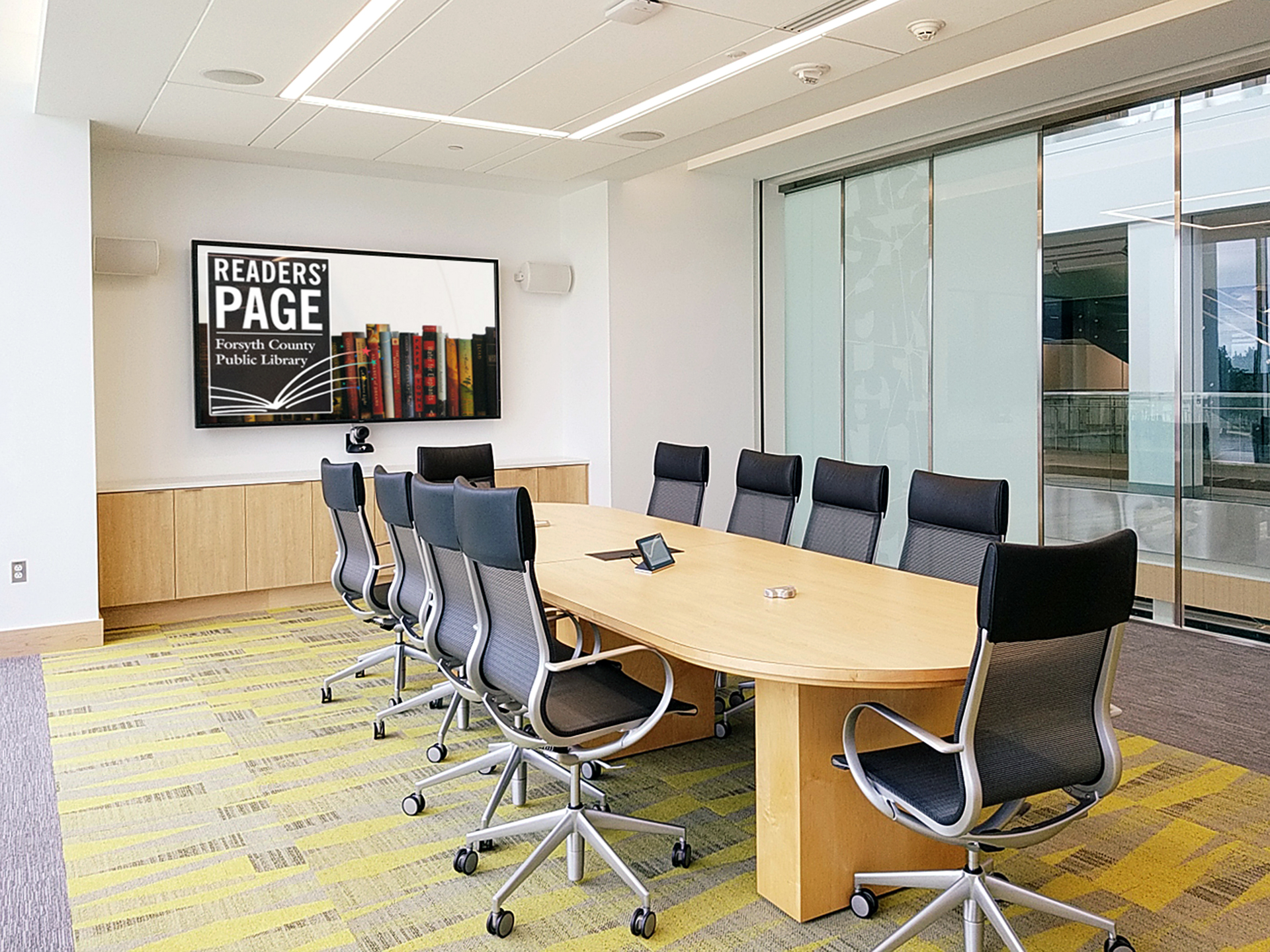 The three-story, 103,000 SF renovation and addition to the existing Forsyth County Central Library in North Carolina transformed the facility into a technology-rich research and learning environment. Featuring a variety of audiovisual-intensive spaces, the building offers community and staff members state-of-the-art technologies, including wired and wireless network access, visual presentation, distance learning, collaboration, media capture, streaming, and digital archiving.