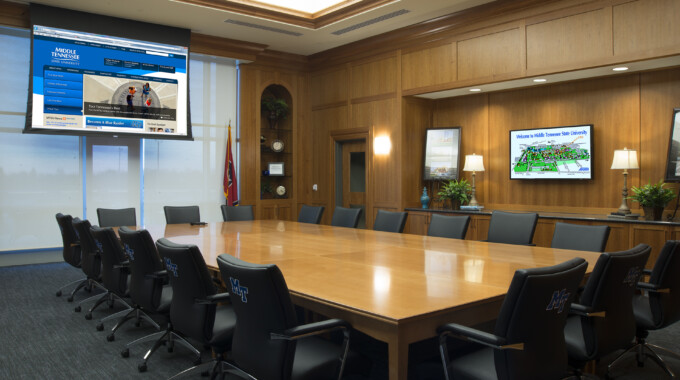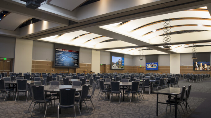 Middle Tennessee State University recently constructed a new three floor, 197,000 SF student union. The university’s goals for its 26,000 students are at the very core of the building, as it serves to help students better collaborate, congregate, and communicate. The center will develop a strong sense of community on campus, acting as a central meeting point for years to come. The new center houses the university’s first full-sized formal ballroom. Large enough to seat 850 for dinner and 1,500 theater style, it is an extremely versatile facility. It can be easily subdivided into five spaces using motorized partitions. When partitions are in place, each sector is complete with independent audiovisual systems. The space also includes “pre-function” areas where people can gather before events.