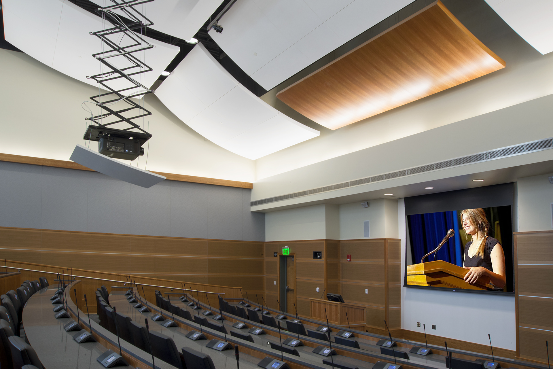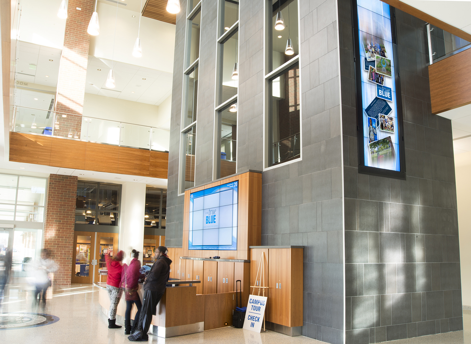 The ADA Certified Video Theater showcases first-run films sourced from a digital video service and also allows playback of Blu-ray discs, 3-D content and other media types. The Parliamentary Room gives the student government association a place to legislate and vote, using the delegate-style speech intelligibility and electronic voting system. Modeled after a contemporary legislative voting chamber, it is a unique feature of the student center. Multiple conference rooms and meeting spaces are filled with collaborative technology, encouraging the importance of group-work in modern academia. The spaces also offer informal study areas and an outlet for computer-based class work. The union meets the needs of the on-the-go student offering a place to connect with other students and learn collaboratively, yet provides a comfortable space to dine and unwind after a long day.