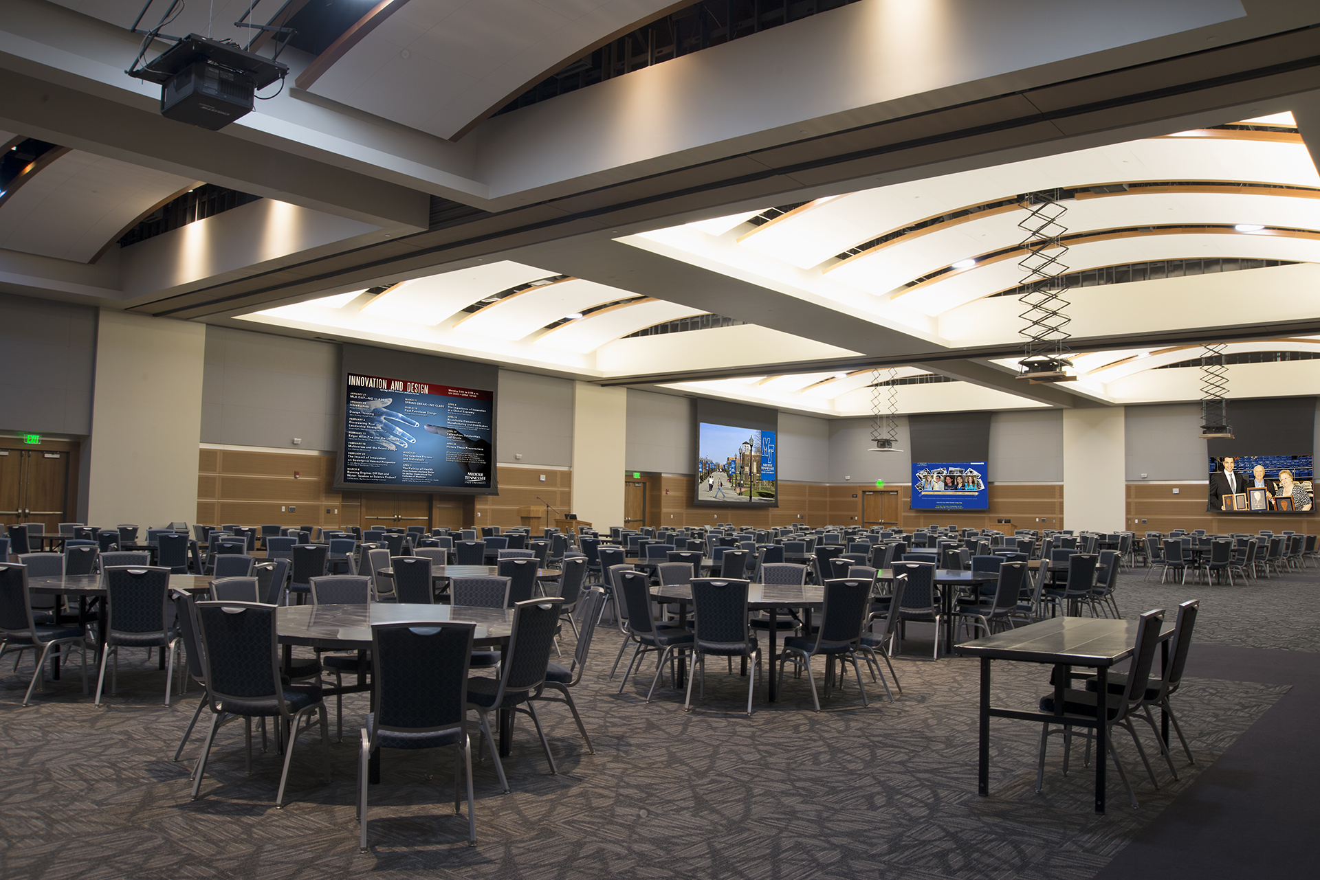 Middle Tennessee State University recently constructed a new three floor, 197,000 SF student union. The university’s goals for its 26,000 students are at the very core of the building, as it serves to help students better collaborate, congregate, and communicate. The center will develop a strong sense of community on campus, acting as a central meeting point for years to come. The new center houses the university’s first full-sized formal ballroom. Large enough to seat 850 for dinner and 1,500 theater style, it is an extremely versatile facility. It can be easily subdivided into five spaces using motorized partitions. When partitions are in place, each sector is complete with independent audiovisual systems. The space also includes “pre-function” areas where people can gather before events.