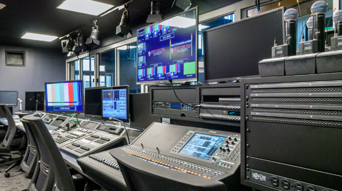 Montclair State proudly calls their new communications school “the most technologically advanced broadcast media production facility at any university in the country.” And they may very well be right. Complete with a fully 4K IP Based Broadcast Studio, a motion picture sound stage, and a professional screening room with digital cinema production, the new 60,000 SF facility is built around an “all-in-one fusion” concept designed to strengthen industry partnerships, blend traditional and digital learning, and physically link and engage learning spaces.