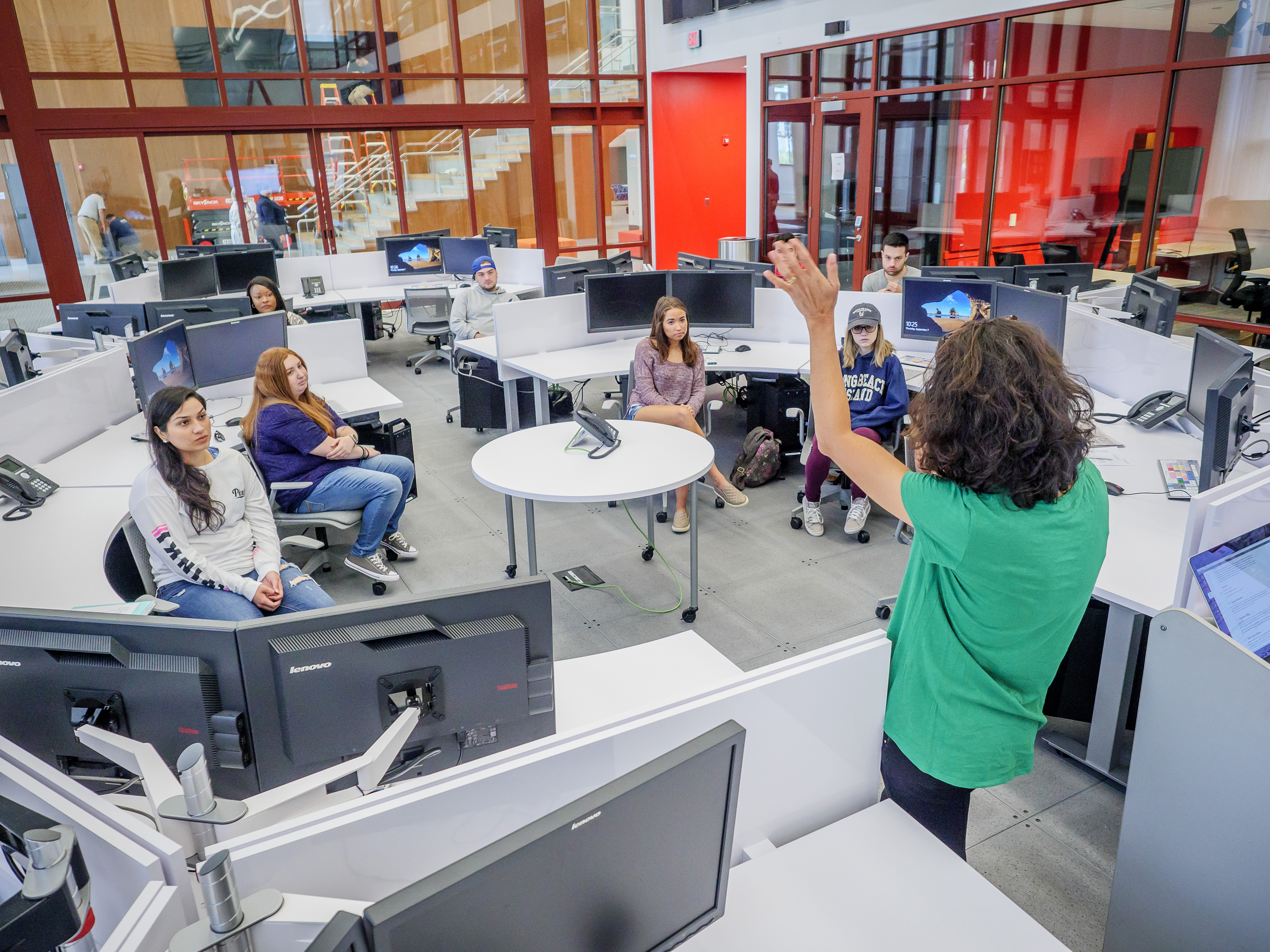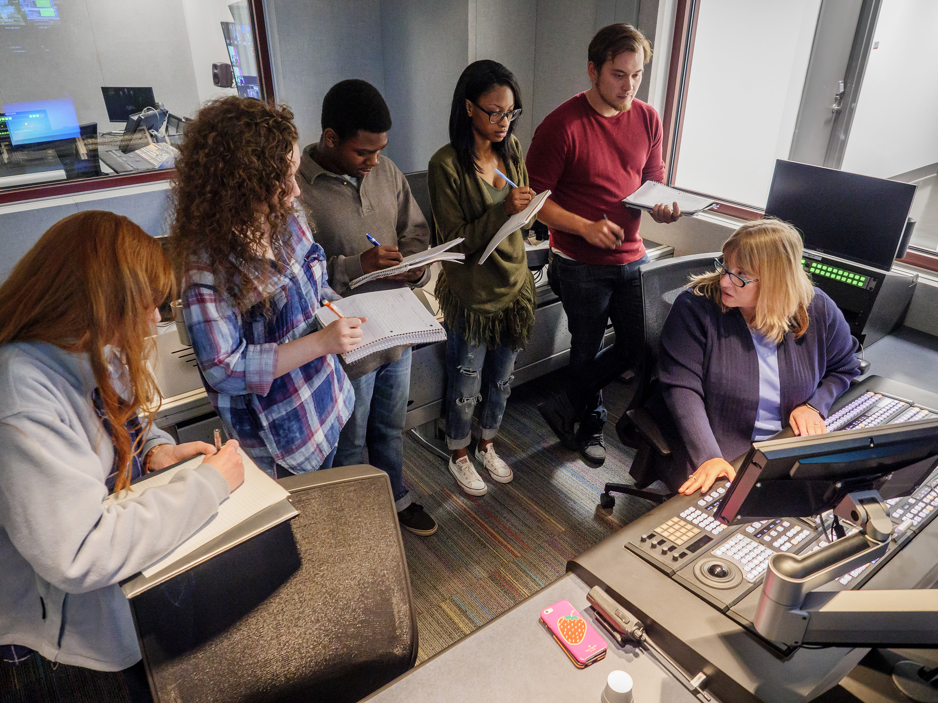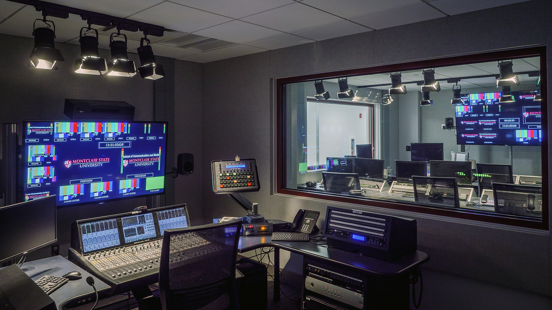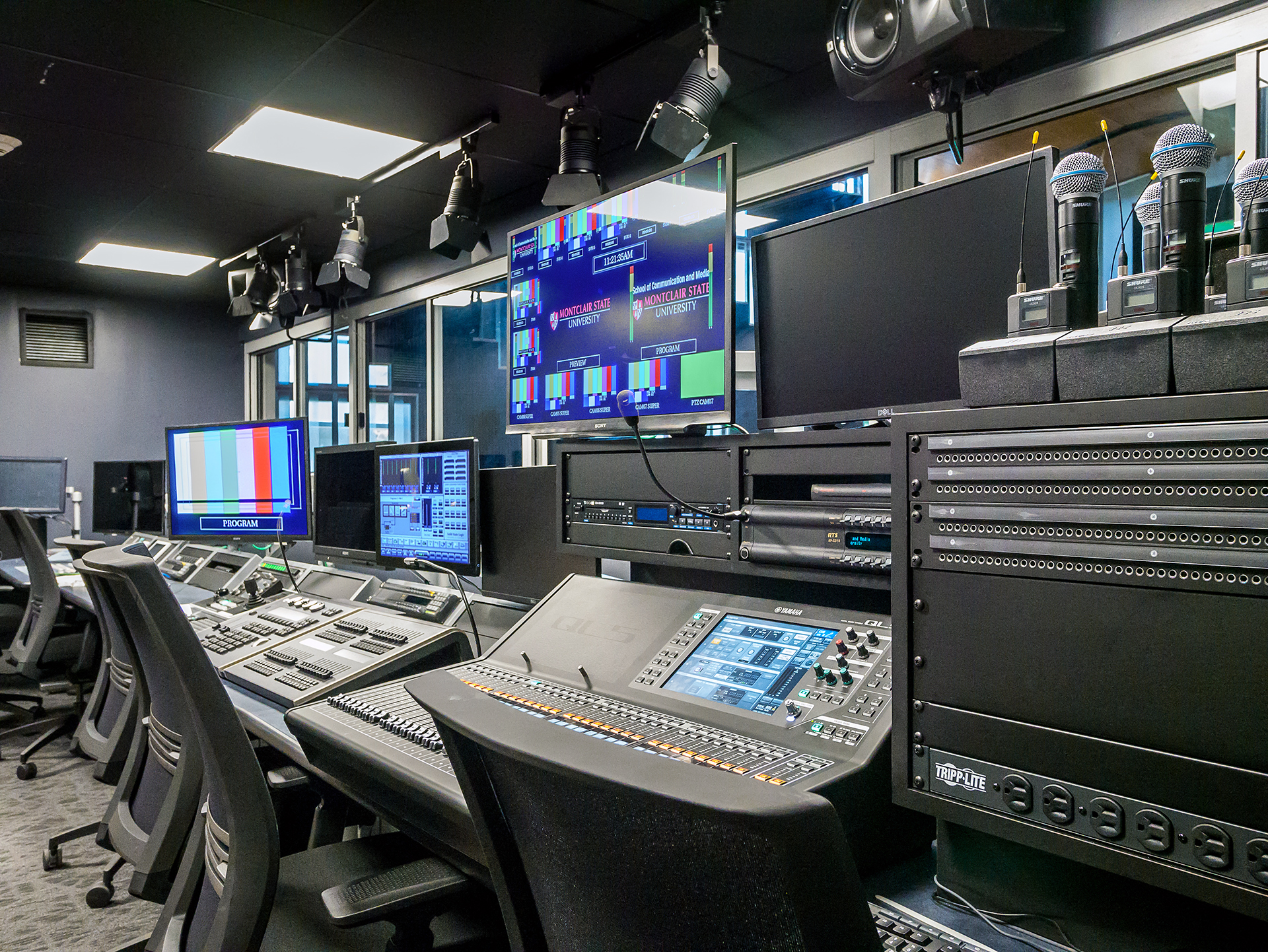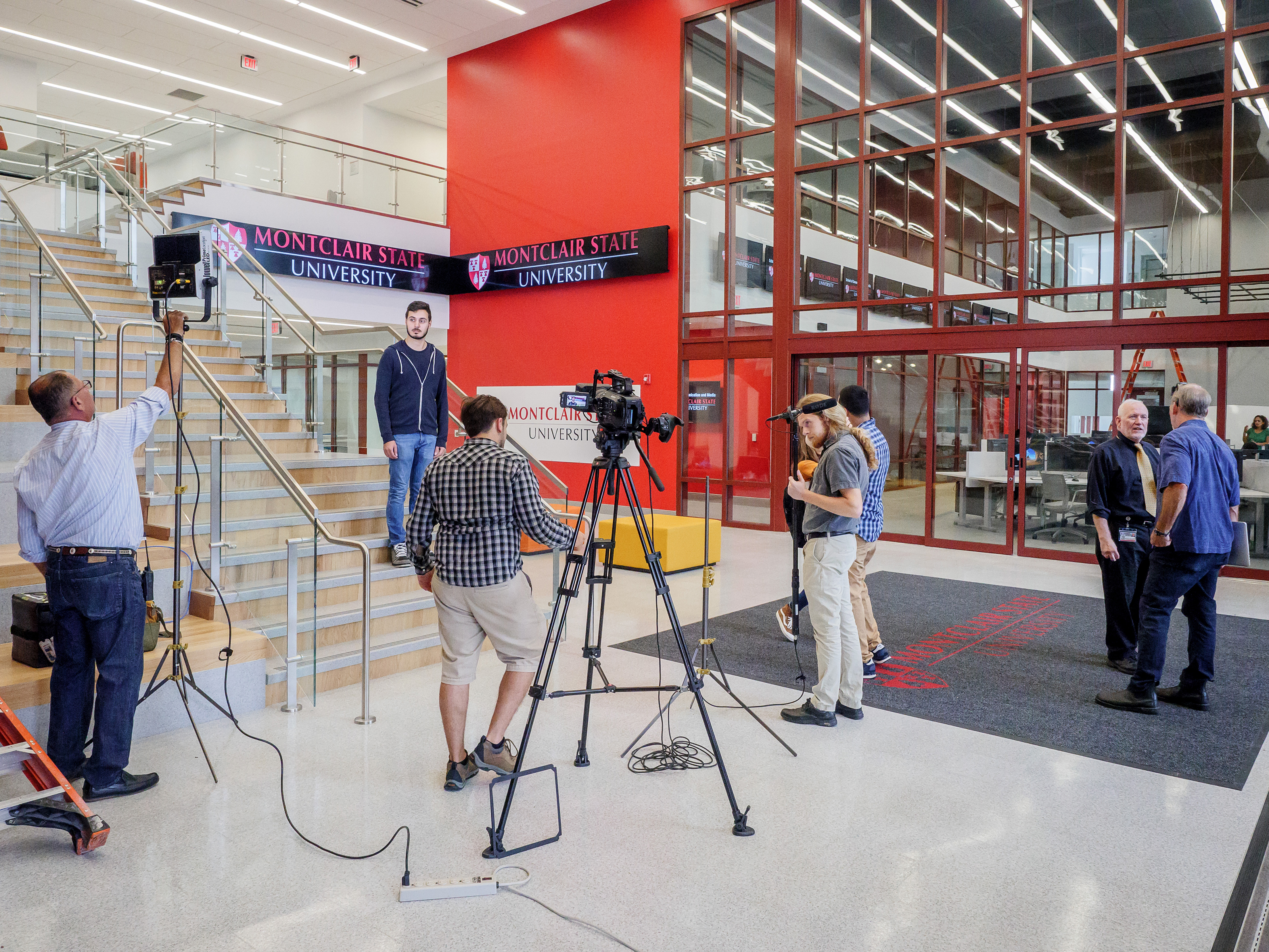 The heart of the journalism and digital media programs is the News Room of the Future. This instructional, live news “makerspace” houses upwards of 50 students, and simulates a real-life, professional news room environment. It is supported by a rapid set-up “instant news” guest interview studio, an isolated edit bay, dedicated voice-over booth, and a full-featured control room. A partnership with Sony Electronics delivers the latest technology as used in Hollywood, giving students a competitive advantage in launching their careers in the industry. Montclair State’s reputation of cutting-edge media arts programs also embraces a rich heritage of notable alumni, from Allen Ginsberg to Bruce Willis. The new School of Communications and Media Studies offers spaces teeming with technology, designed to prepare students to enter the workplace as creative and critical decision makers.