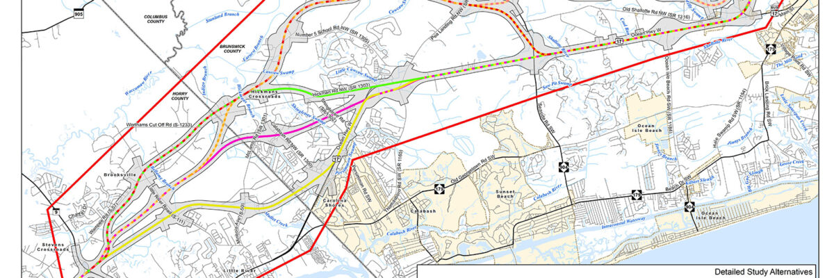 NV5 has been coordinating the project development and environmental and engineering services for the proposed extension of Carolina Bays Parkway (SC 31), from SC 9 to US 17 Shallotte Bypass in southeastern North Carolina. This joint North Carolina Department of Transporation (NCDOT) and South Carolina Department of Transporation (SCDOT) coastal plain project is expected to involve the construction of a multi-lane, full control of access freeway, with a partial focus on a new location. Several preliminary alternatives up to 20 miles in length and with multiple interchange locations will be evaluated in the 54-square-mile study area. Environmental services include wetland and stream delineation, surveys for all federally protected species and their habitat, United State Army Corps of Engineers (USACE) Preliminary Jurisdictional Determination and vegetative community classification for inclusion in an Environmental Impact Statement. LiDAR and aerial imagery as well as National Wetland Inventory (NWI) and United States Geological Survey (USGS) mapping have been used to screen the alternative corridors and identify areas with highest potential for wetlands and streams. Over 1,650 acres of wetlands were delineated in this challenging environment. Shapefiles and CADD files were produced for use in roadway and bridge design, and NV5 will secure all necessary environmental permits through state and federal agencies.