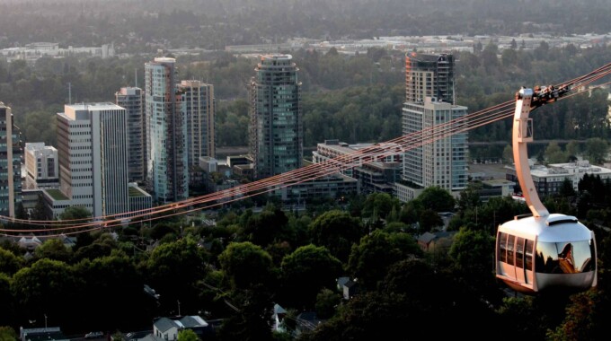 The 38-acre South Waterfront mixed-use development includes high- and mid-rise condominium and apartment towers, patient care and medical research facilities, a 4-acre greenway, new private and public streets, an extension of the streetcar line, and the Portland Aerial Tram.