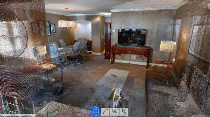 The project involved capturing the interior and exterior conditions of this six-level hotel. The team performed an aerial drone inspection of the hotel’s facade, complemented by detailed laser scanning of approximately 175 guest rooms and service areas across all levels. Also, each room’s power and telecommunication/data outlets were meticulously verified for accuracy. Deliverables included a point cloud, a virtual tour featuring 1,586 panoramas, and a Revit model. The model integrated various furniture and equipment elements, representing the space and adhering to the highest standards of dimensional precision. This architectural documentation provided ongoing accessibility to the data, supporting future planning, asset management, and marketing initiatives. This holistic approach aimed to create a valuable resource for stakeholders, ensuring informed decision-making throughout the building’s lifecycle.