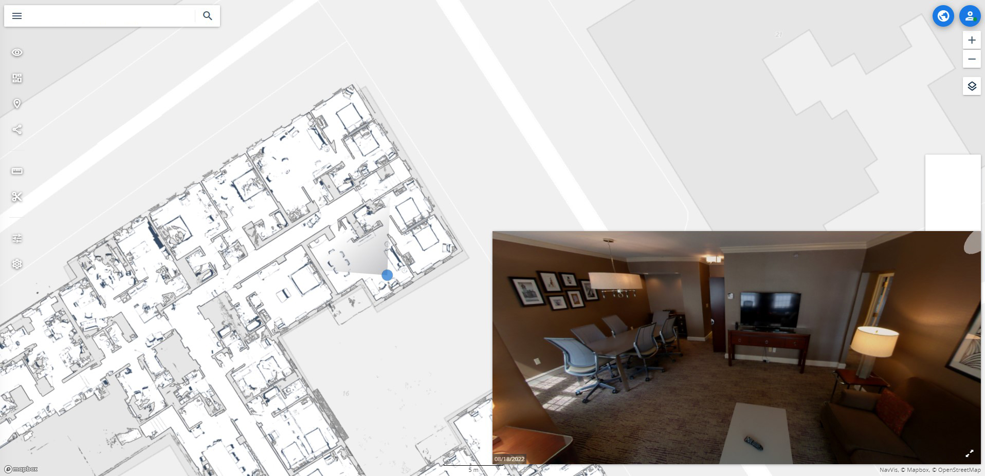The project involved capturing the interior and exterior conditions of this six-level hotel. The team performed an aerial drone inspection of the hotel’s facade, complemented by detailed laser scanning of approximately 175 guest rooms and service areas across all levels. Also, each room’s power and telecommunication/data outlets were meticulously verified for accuracy. Deliverables included a point cloud, a virtual tour featuring 1,586 panoramas, and a Revit model. The model integrated various furniture and equipment elements, representing the space and adhering to the highest standards of dimensional precision. This architectural documentation provided ongoing accessibility to the data, supporting future planning, asset management, and marketing initiatives. This holistic approach aimed to create a valuable resource for stakeholders, ensuring informed decision-making throughout the building’s lifecycle.