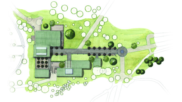 “The land[scape] instead presides over the building, breaking down pat geometries so that they frame views, respond to the terrain, and skirt existing trees.” — Joseph Giovannini, New York Magazine