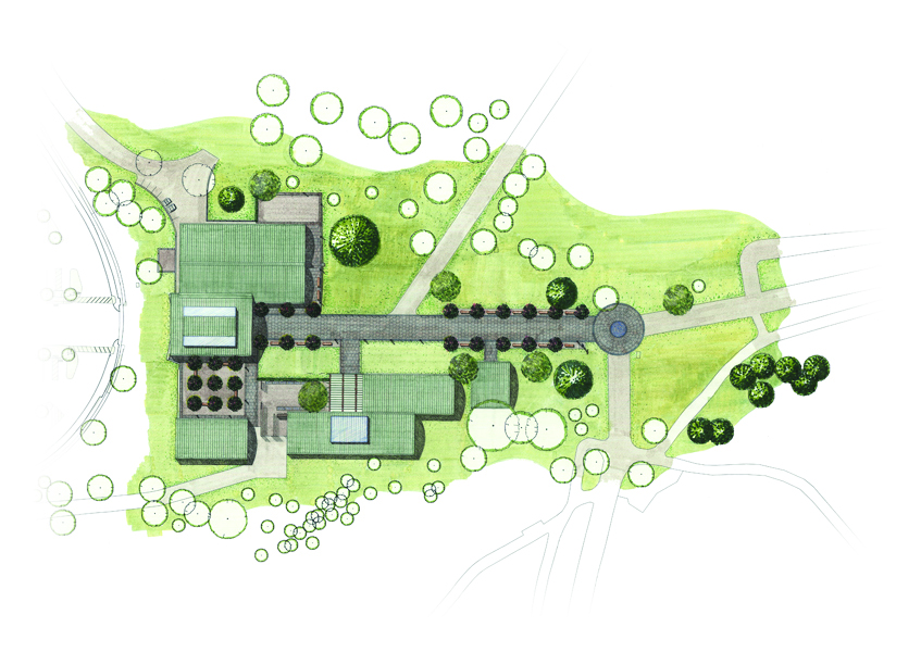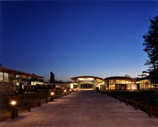 “The land[scape] instead presides over the building, breaking down pat geometries so that they frame views, respond to the terrain, and skirt existing trees.” — Joseph Giovannini, New York Magazine