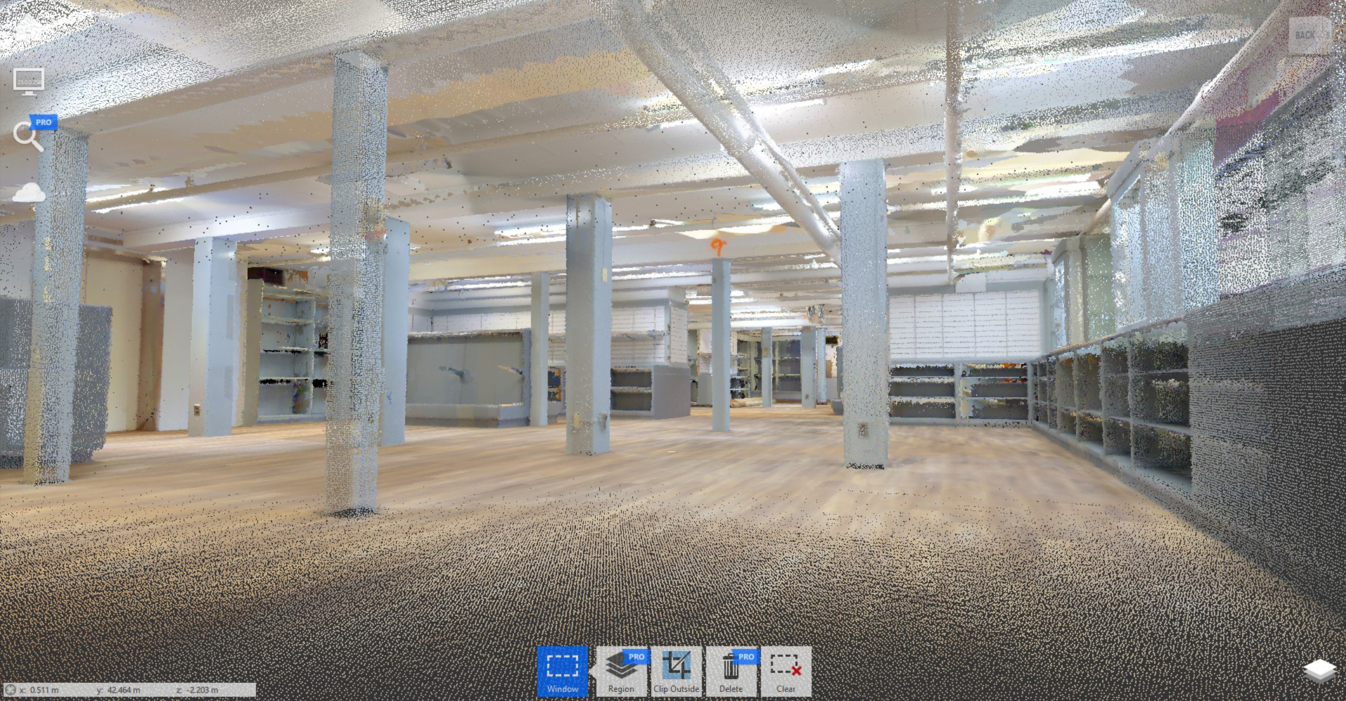The building’s size and use required careful coordination to ensure uninterrupted access and consistent lighting throughout the scan. NV5 also accounted for reflective surfaces and other scan-sensitive conditions during post-processing. The result was a clean, high-resolution point cloud and virtual tour, with outputs formatted for use in AutoCAD and Revit to support the client’s documentation and planning needs.